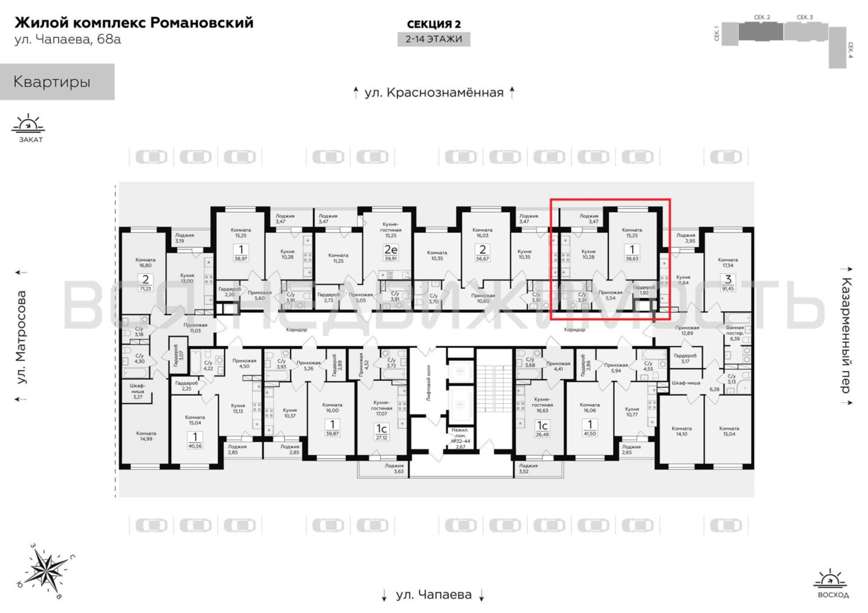 1-комнатная квартира, 38.63 м² 13/14 этаж ID объекта 100103352