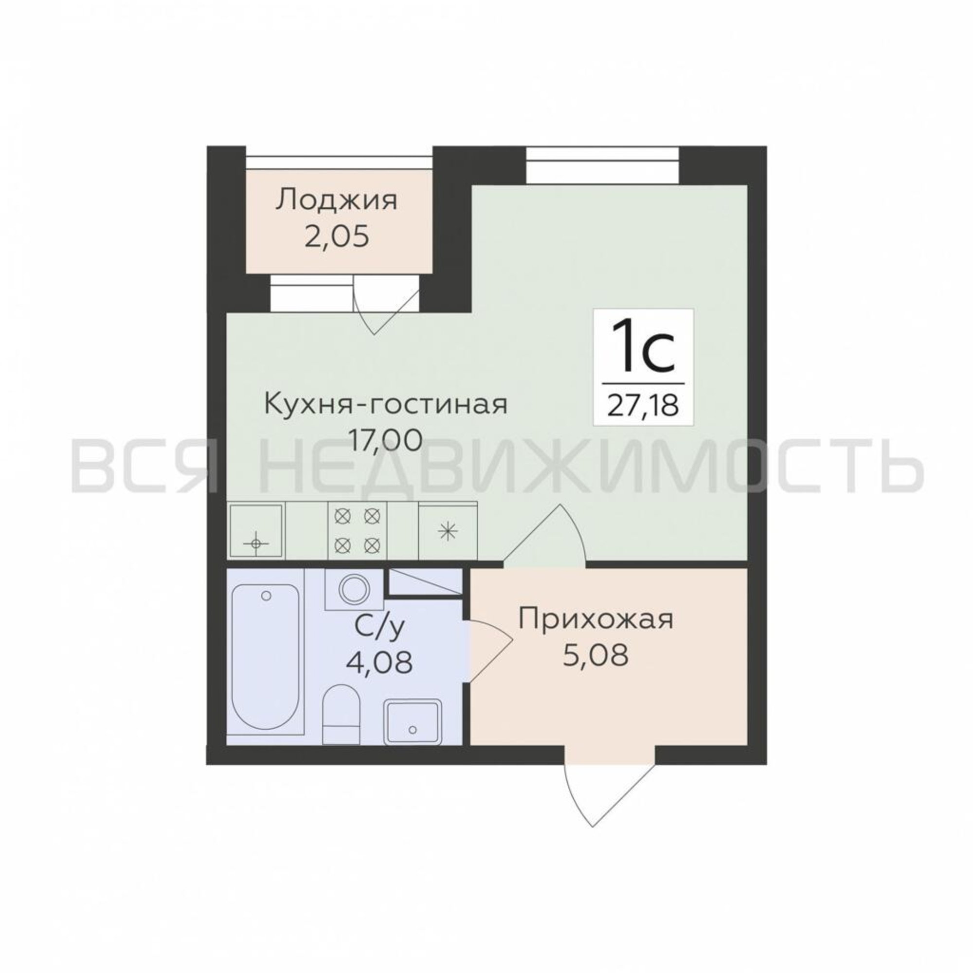 Квартиры-студии, 27.18 м² 5/16 этаж ID объекта 100103410