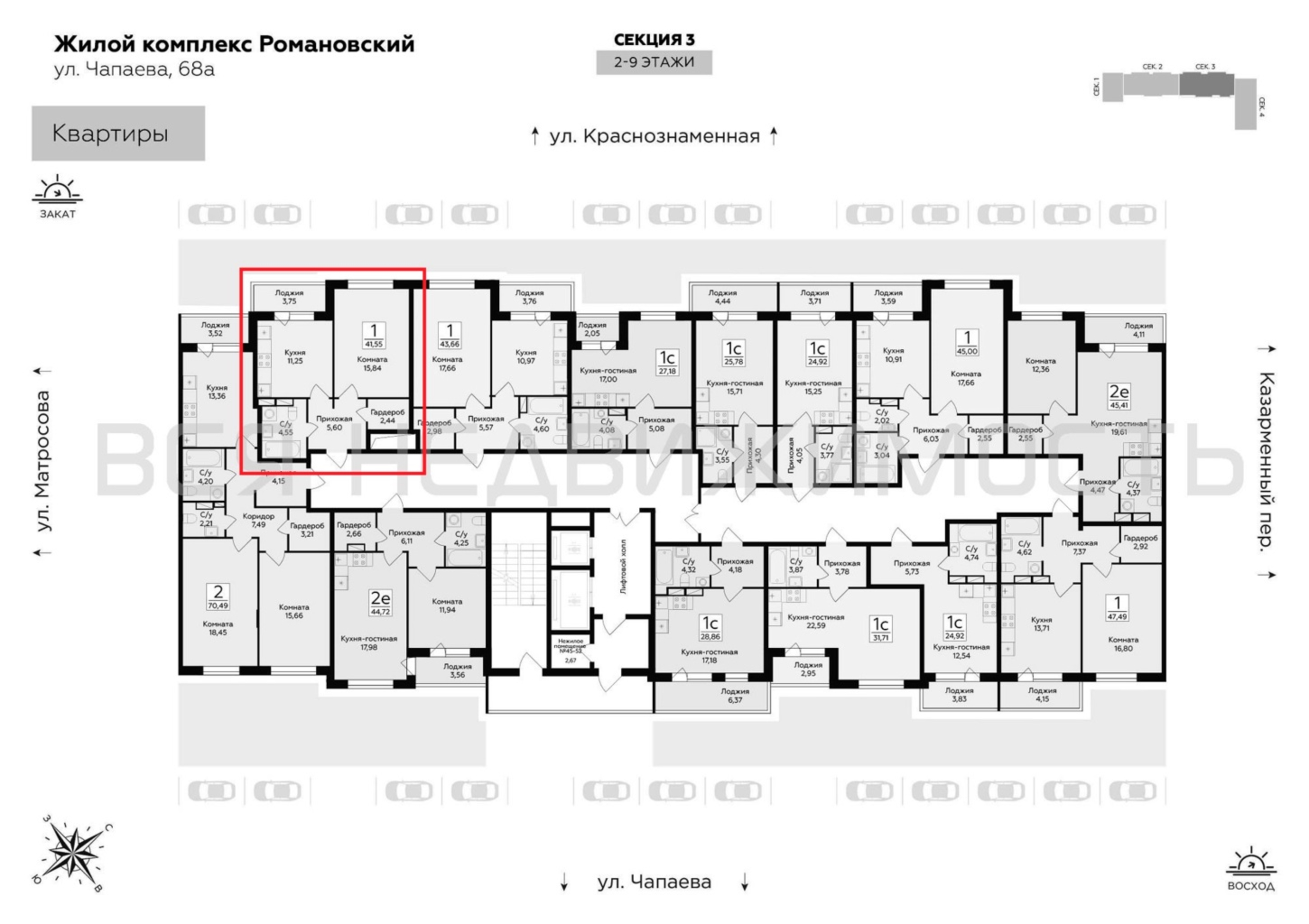 1-комнатная квартира, 41.55 м² 8/16 этаж ID объекта 100103447