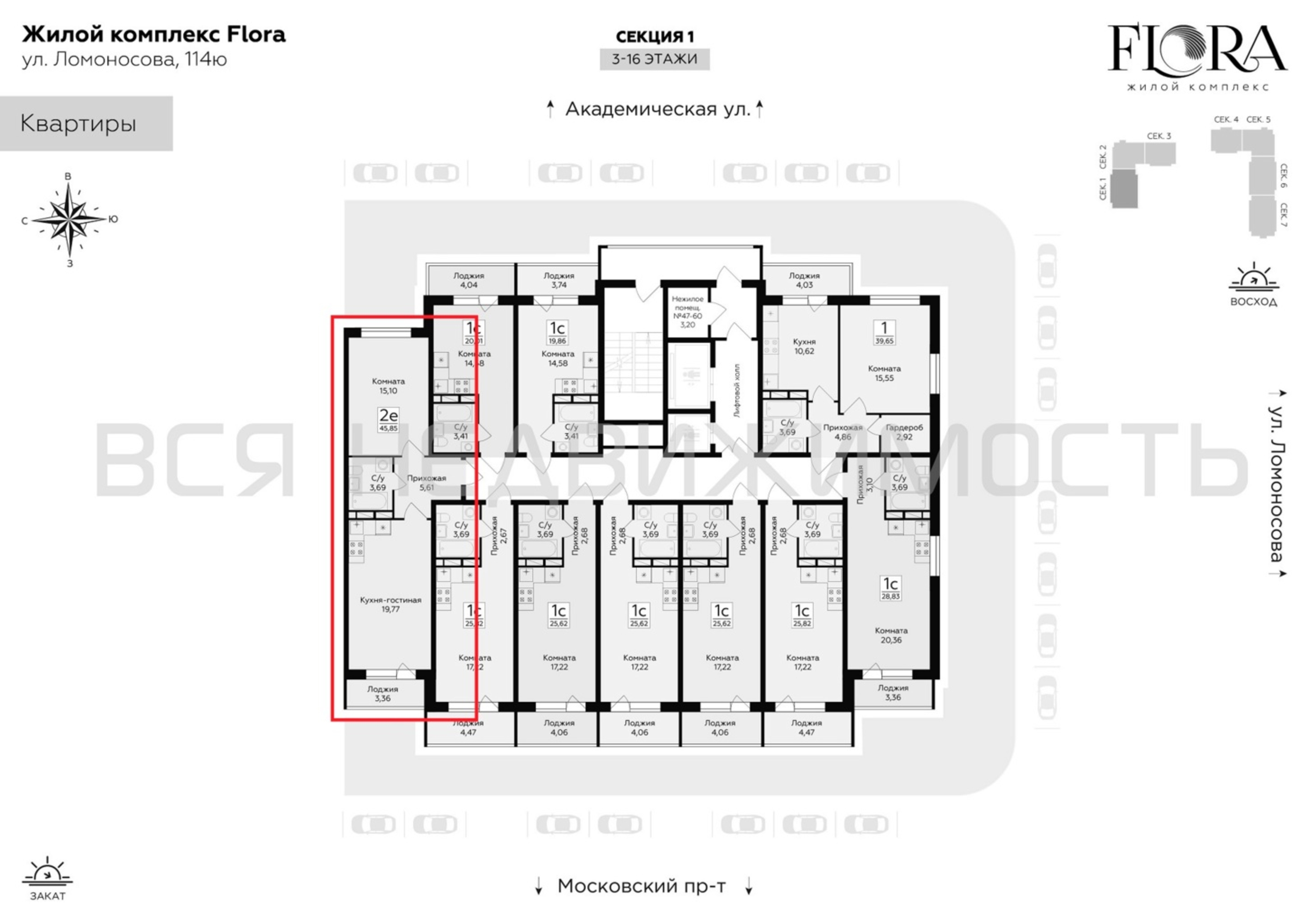 1-комнатная квартира, 45.85 м² 4/16 этаж ID объекта 100103696