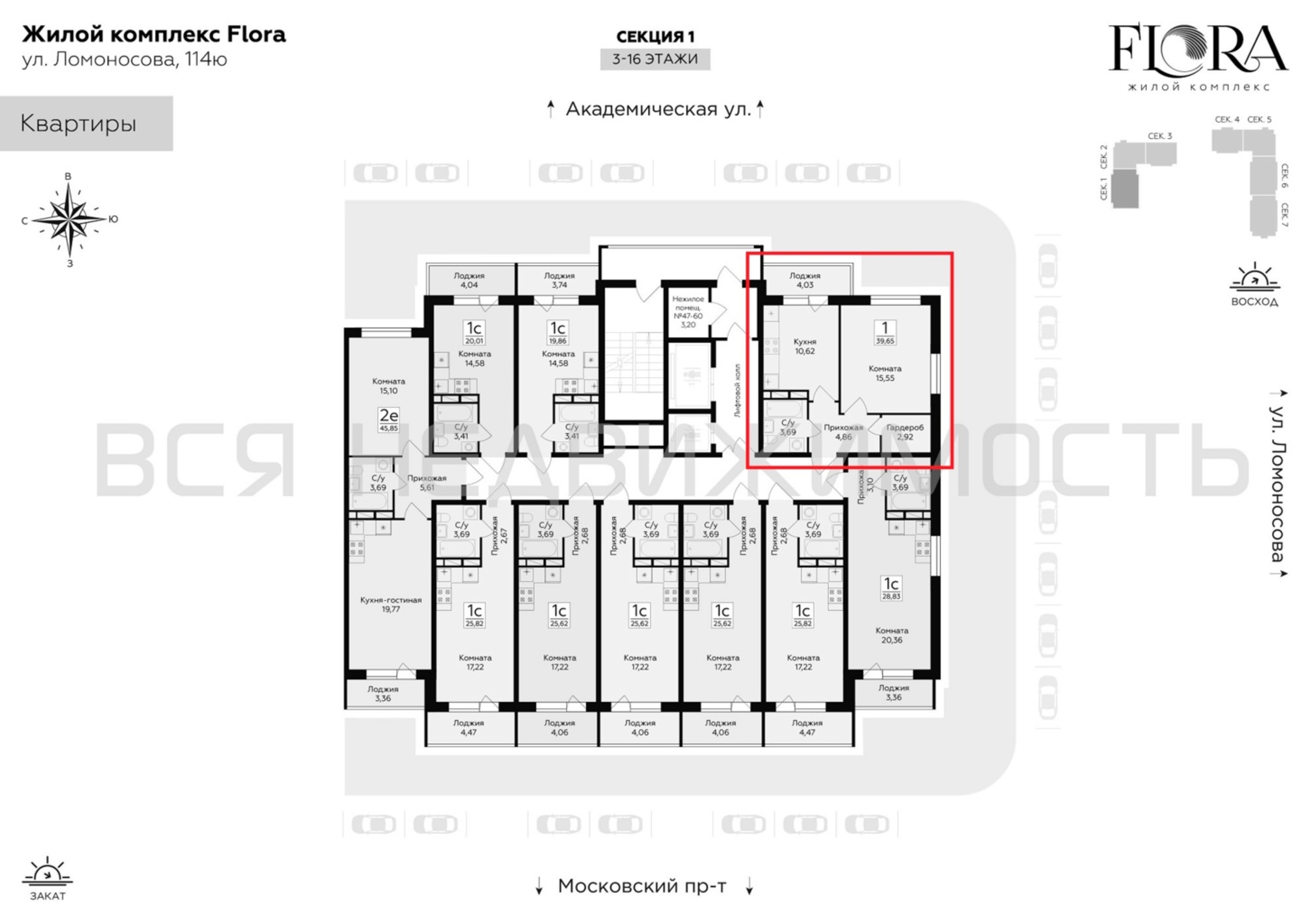 1-комнатная квартира, 39.65 м² 5/16 этаж ID объекта 100103699
