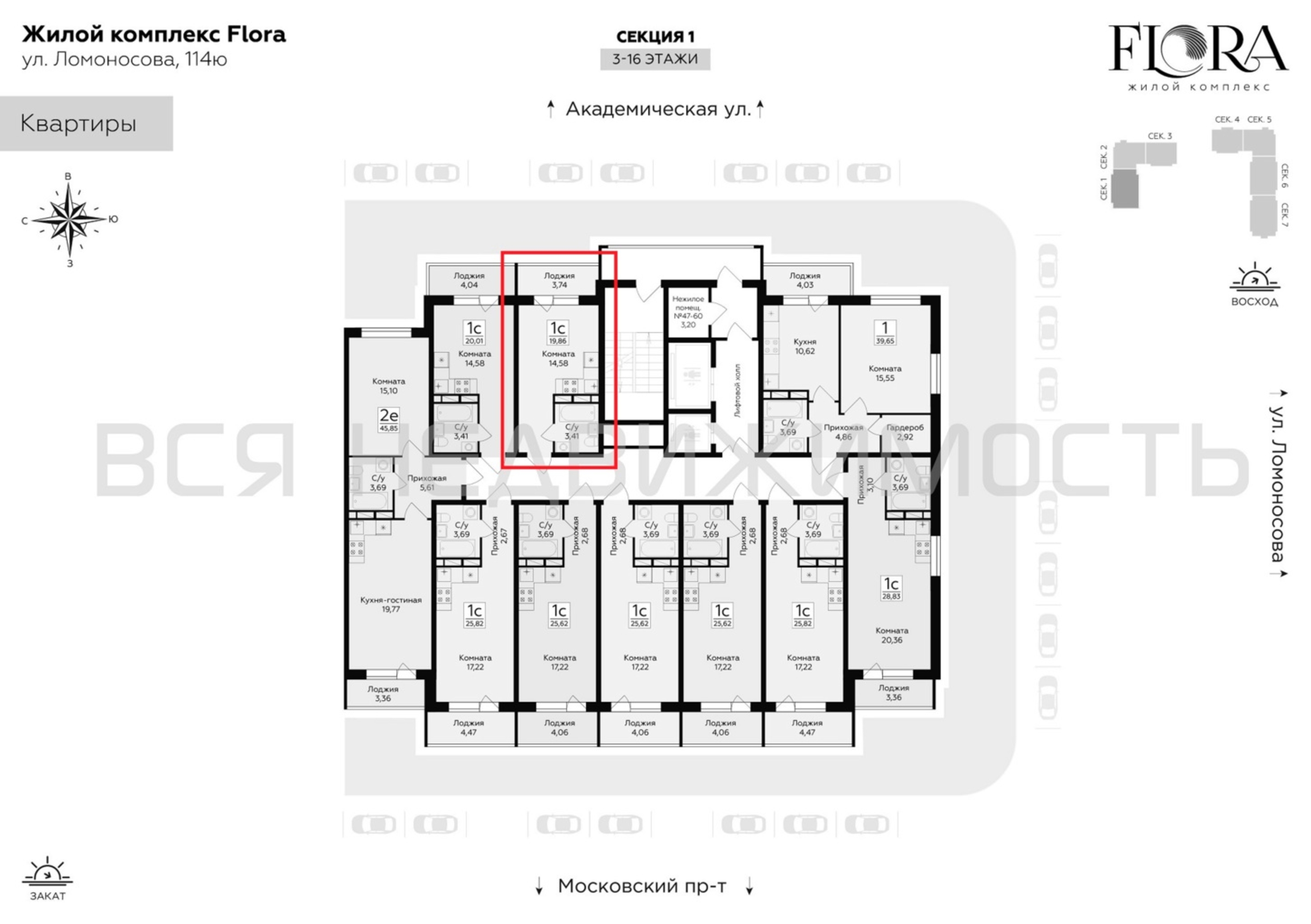 Квартиры-студии, 19.86 м² 13/16 этаж ID объекта 100103788