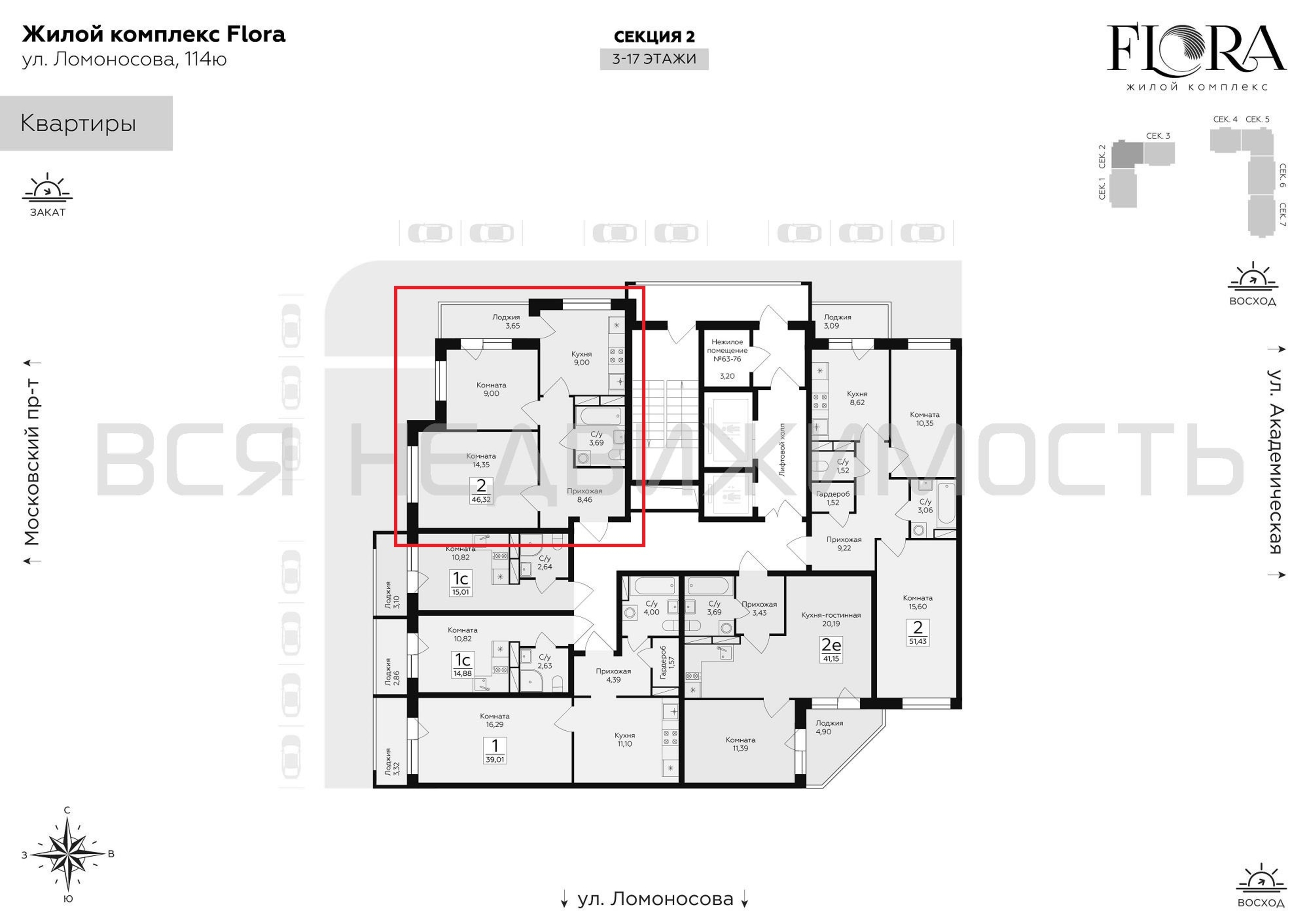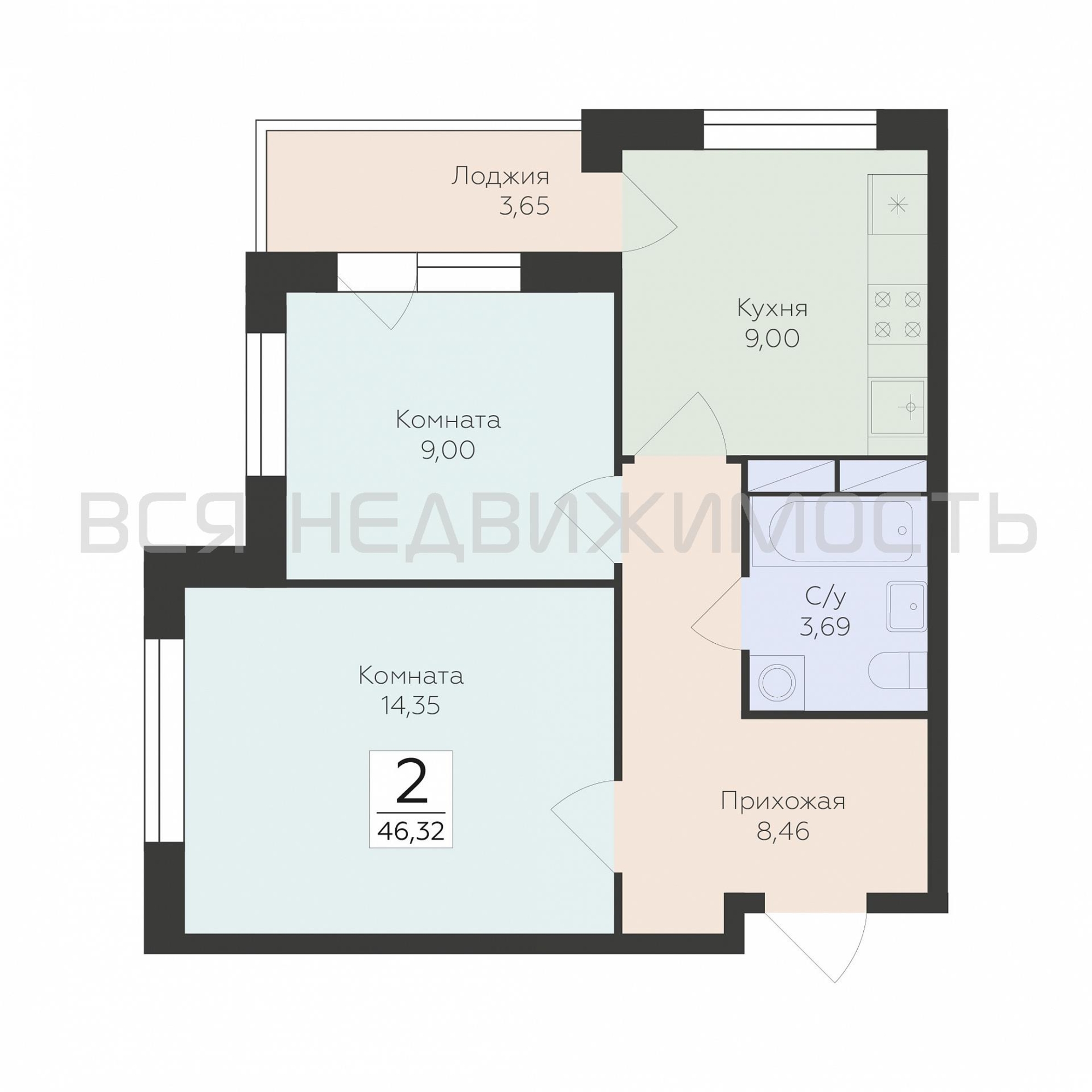 2-комнатная квартира, 46.32 м² 4/17 этаж ID объекта 100103836