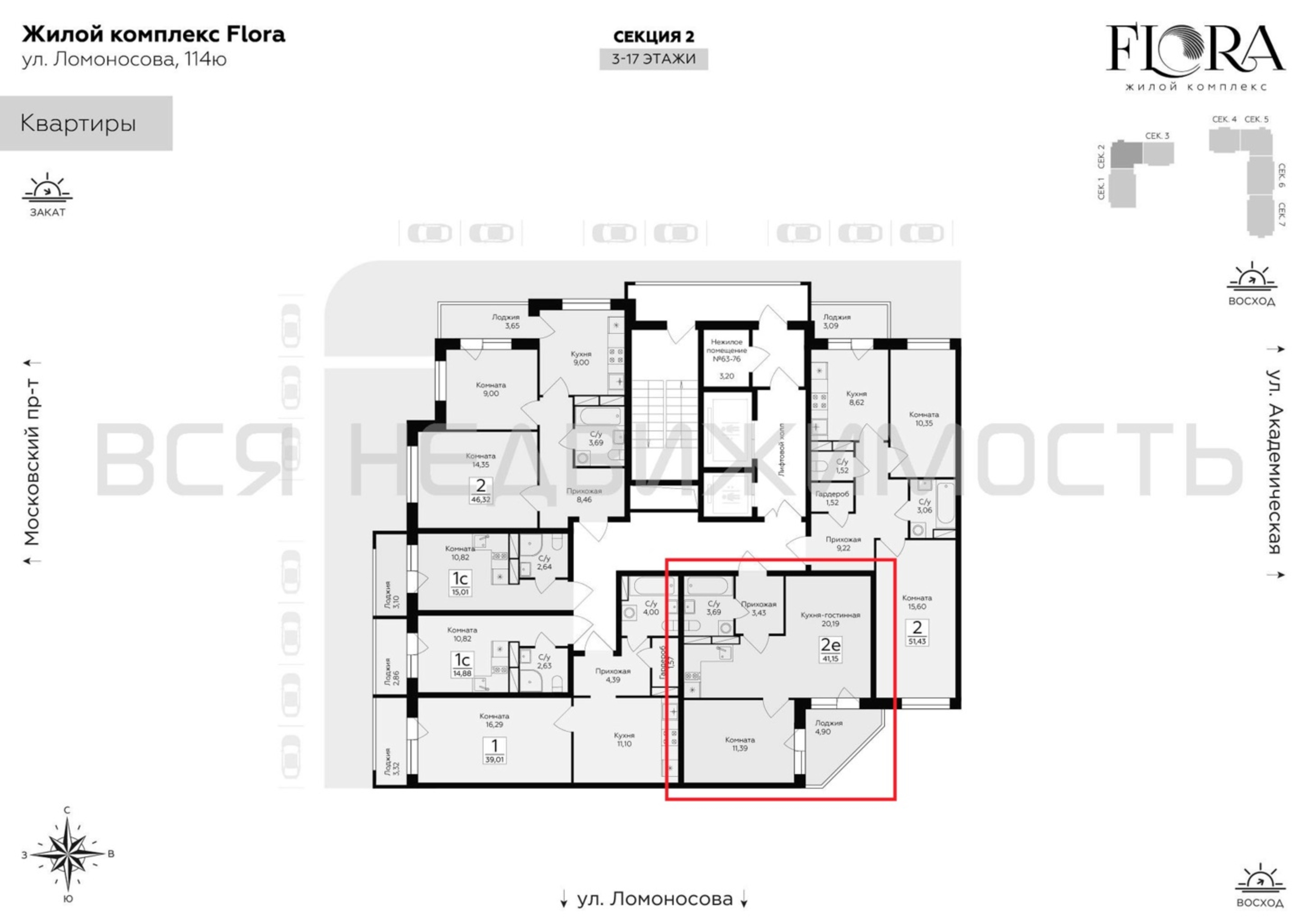 1-комнатная квартира, 41.15 м² 15/17 этаж ID объекта 100103898