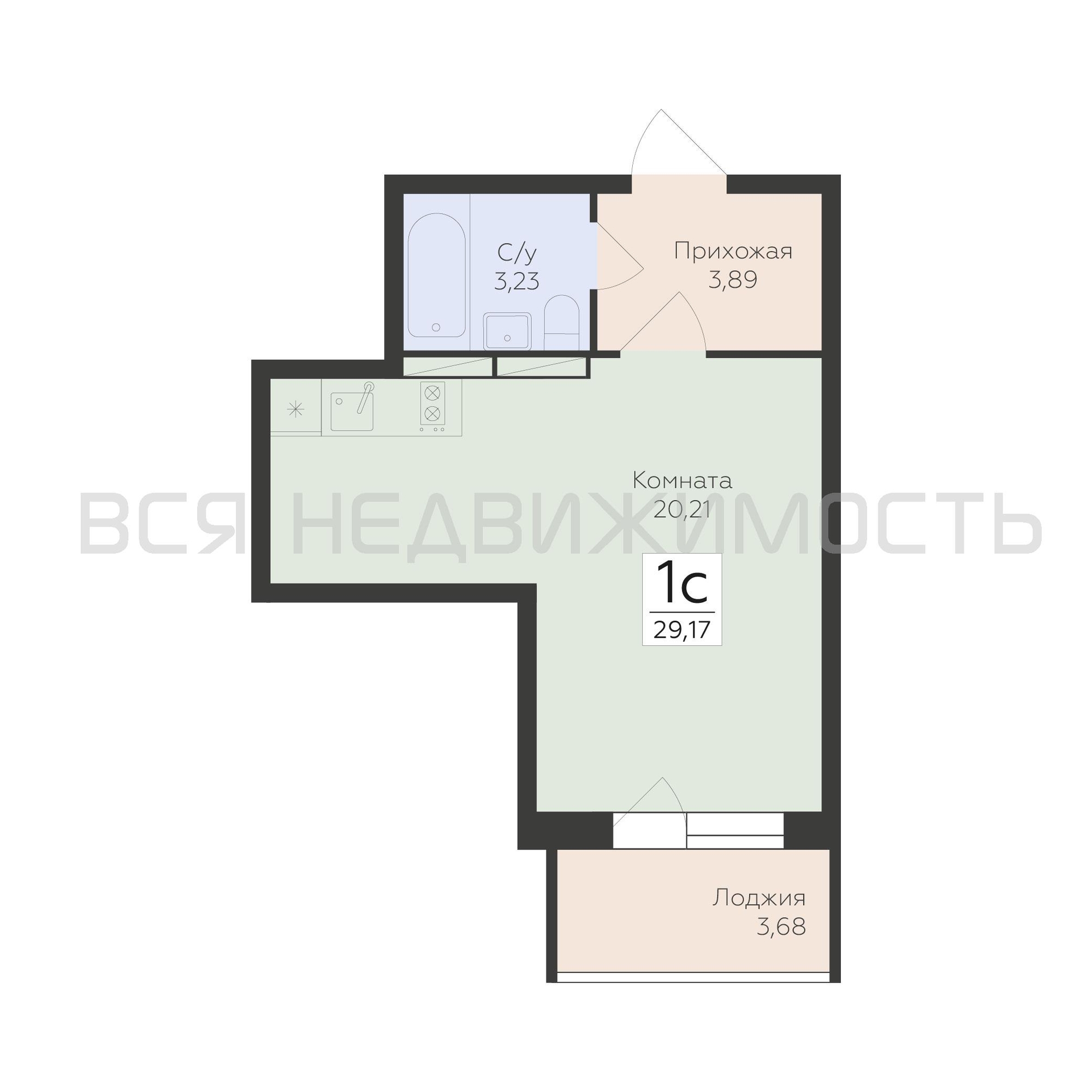 Квартиры-студии, 29.17 м² 4/17 этаж ID объекта 100103927