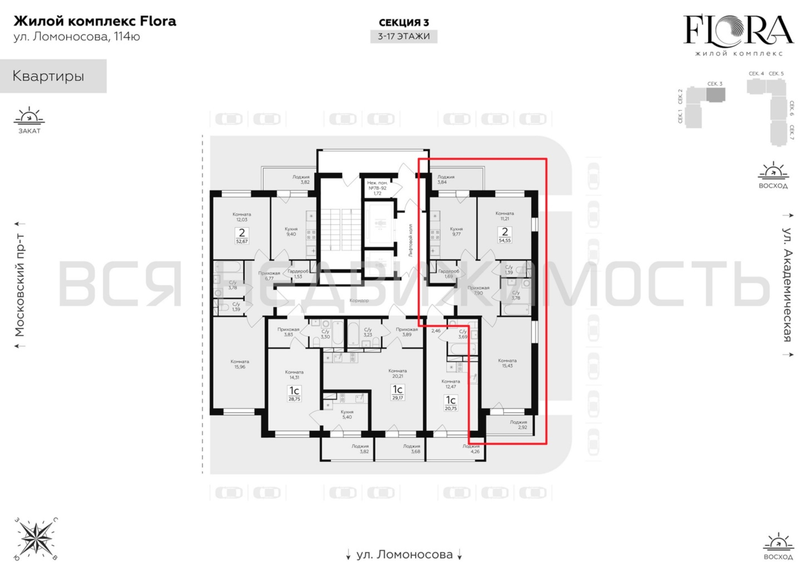 2-комнатная квартира, 54.55 м² 5/17 этаж ID объекта 100103930