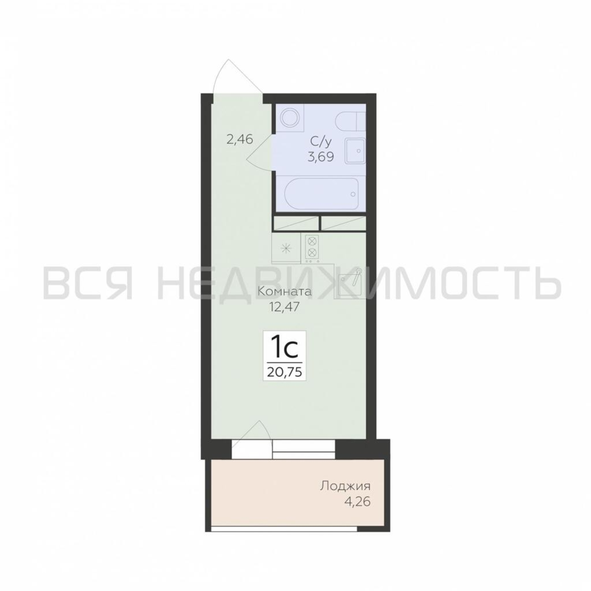 Квартиры-студии, 20.75 м² 6/17 этаж ID объекта 100103936