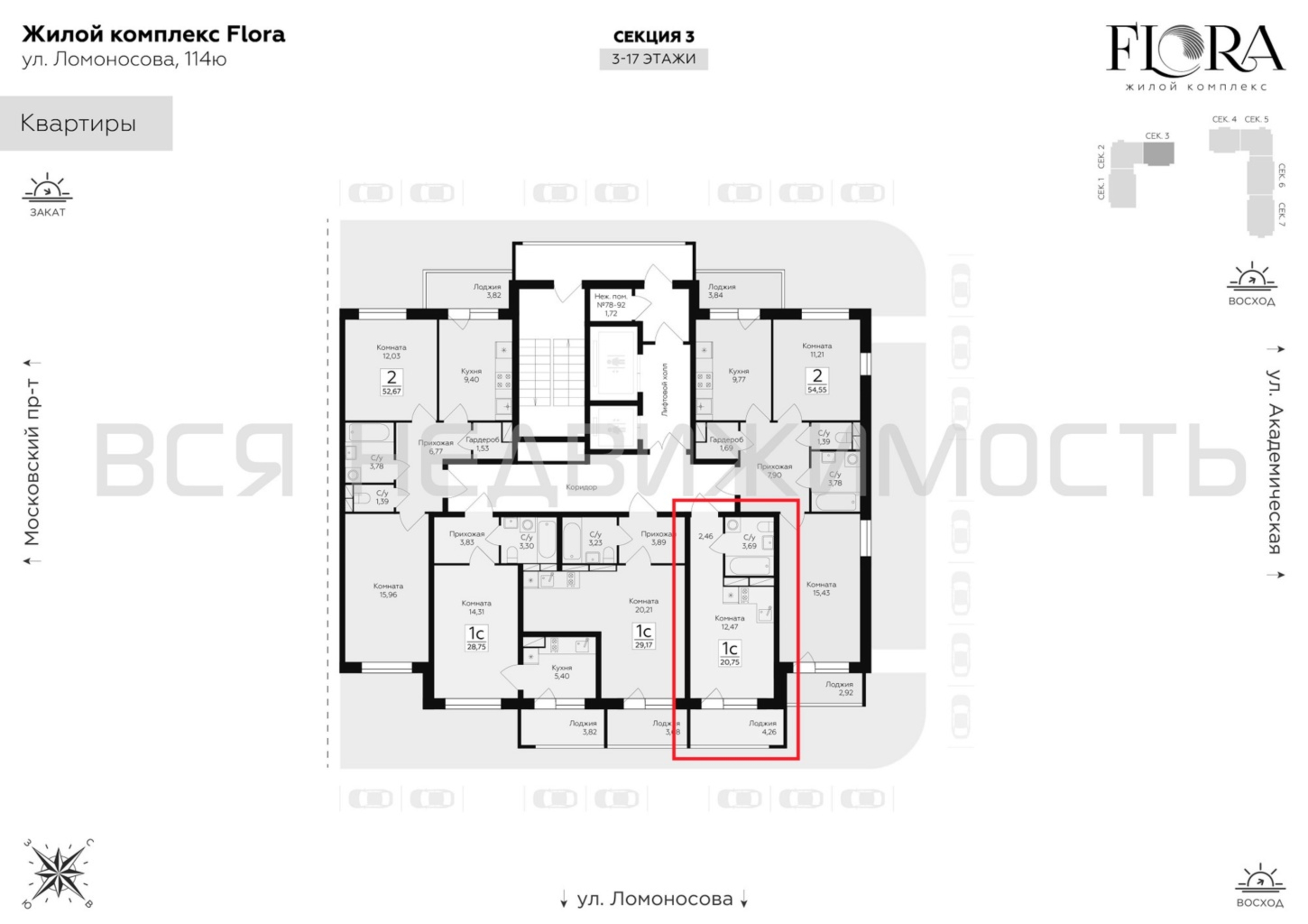 Квартиры-студии, 20.75 м² 10/17 этаж ID объекта 100103956