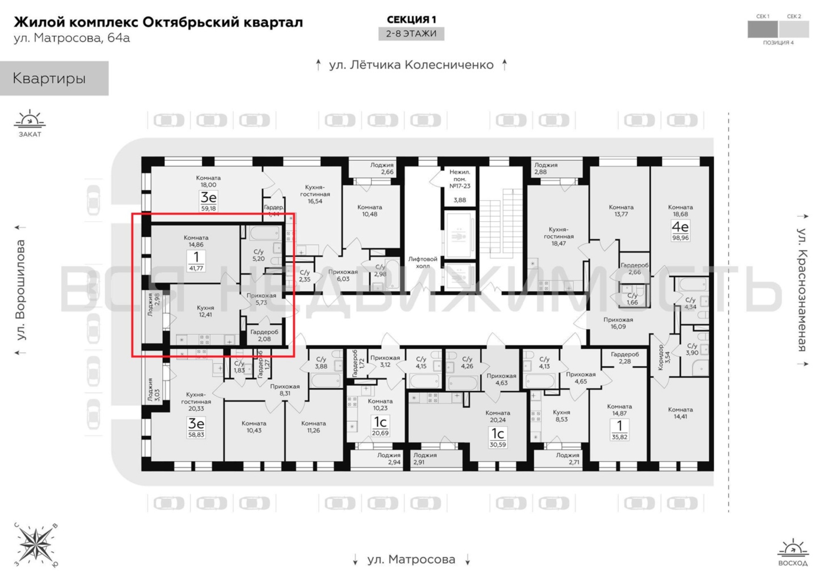 1-комнатная квартира, 41.77 м² 4/8 этаж ID объекта 100104065