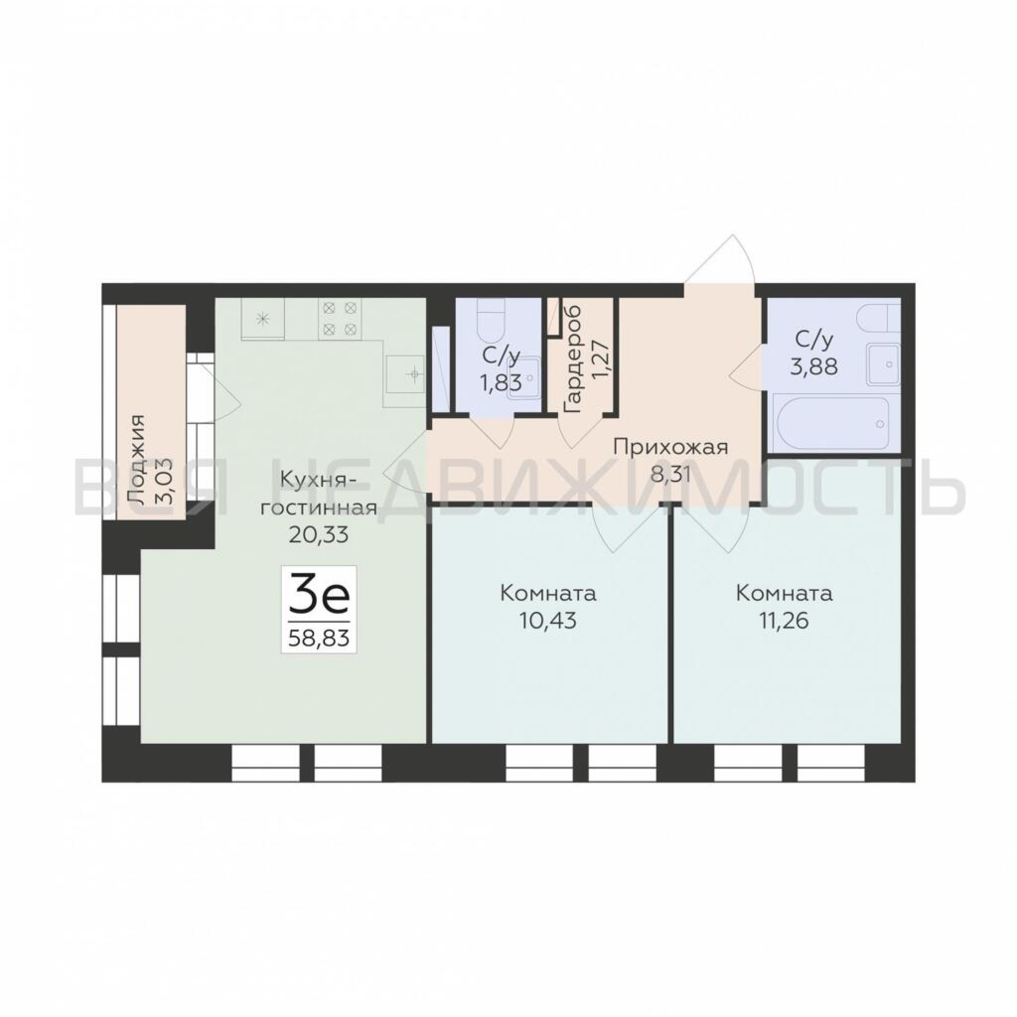 Строительная площадь58.83 м²