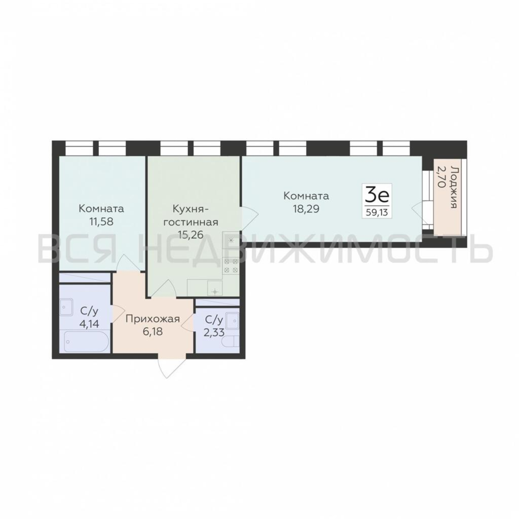 2-комнатная квартира, 59.13 м² 2/8 этаж ID объекта 100104095