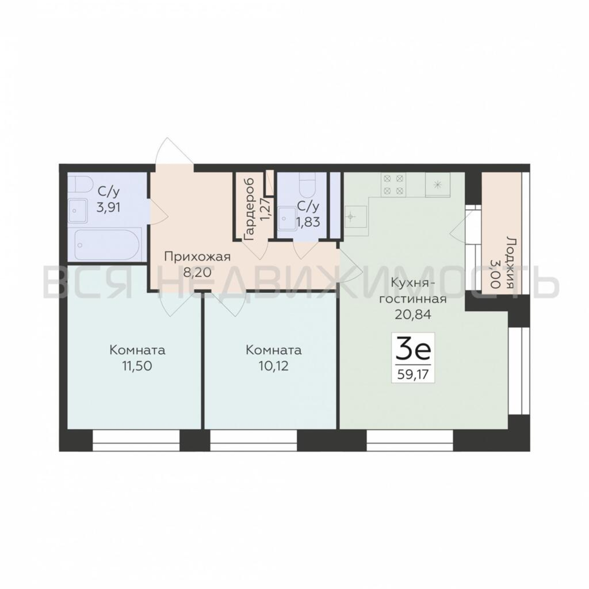 2-комнатная квартира, 59.17 м² 2/8 этаж ID объекта 100104097
