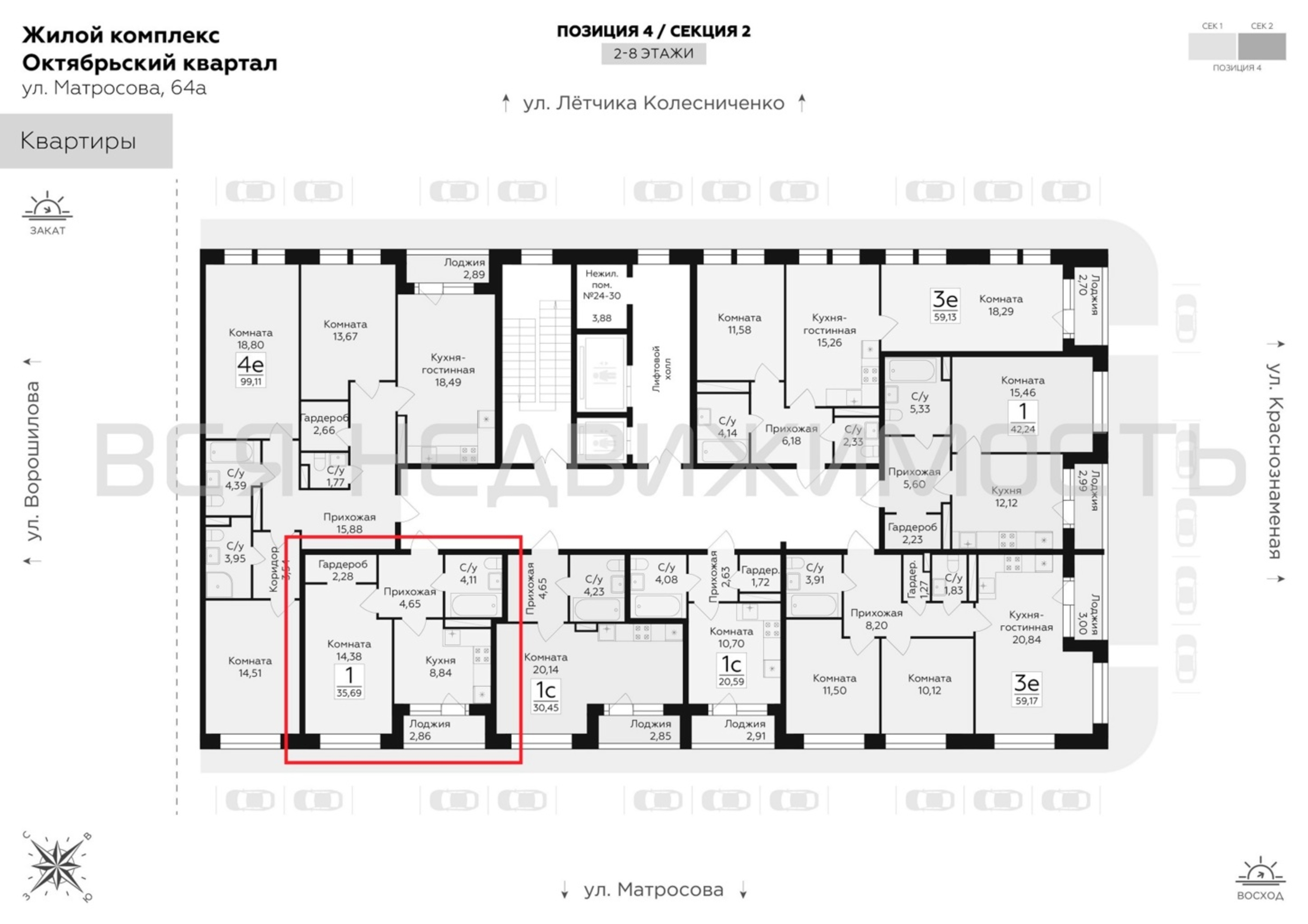 1-комнатная квартира, 35.69 м² 4/8 этаж ID объекта 100104114