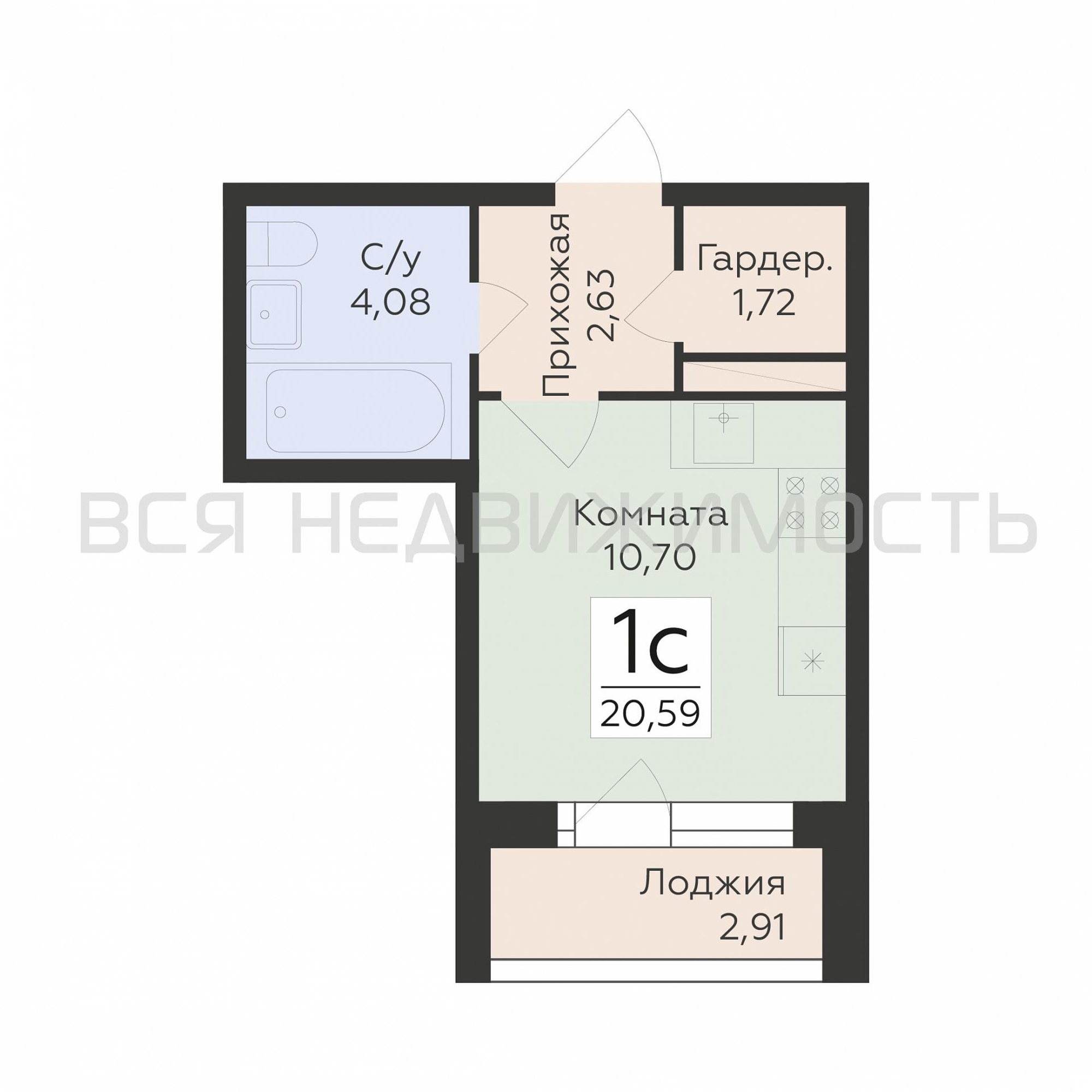 Квартиры-студии, 20.59 м² 5/8 этаж ID объекта 100104119
