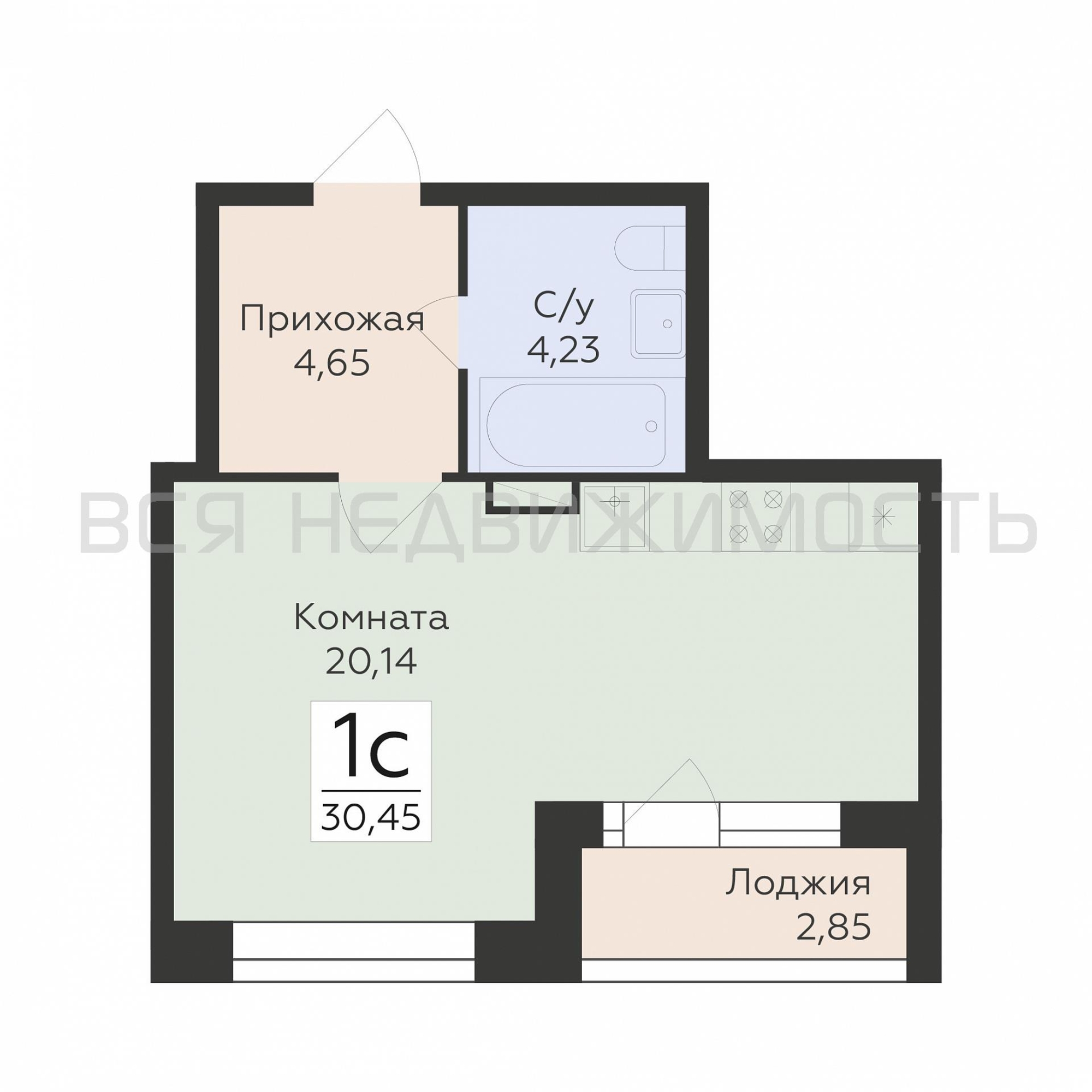 Квартиры-студии, 30.45 м² 6/8 этаж ID объекта 100104127