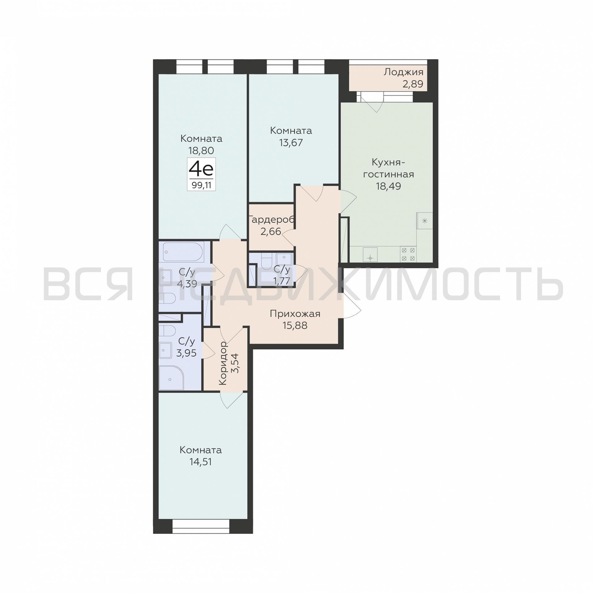3-комнатная квартира, 99.11 м² 7/8 этаж ID объекта 100104136