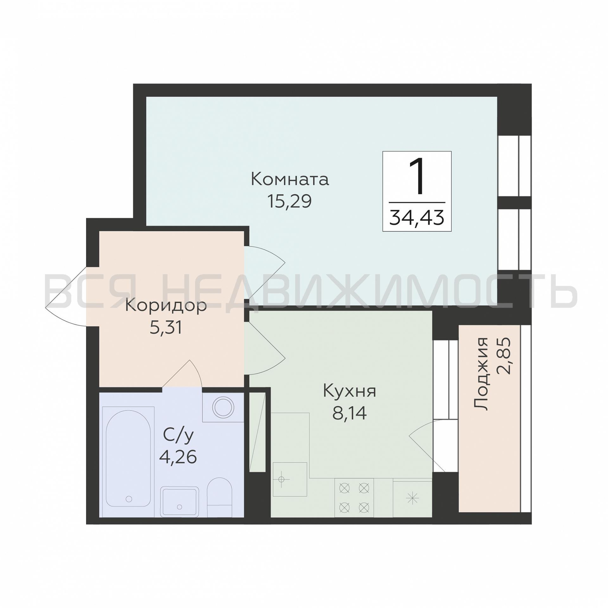 Строительная площадь34.43 м²