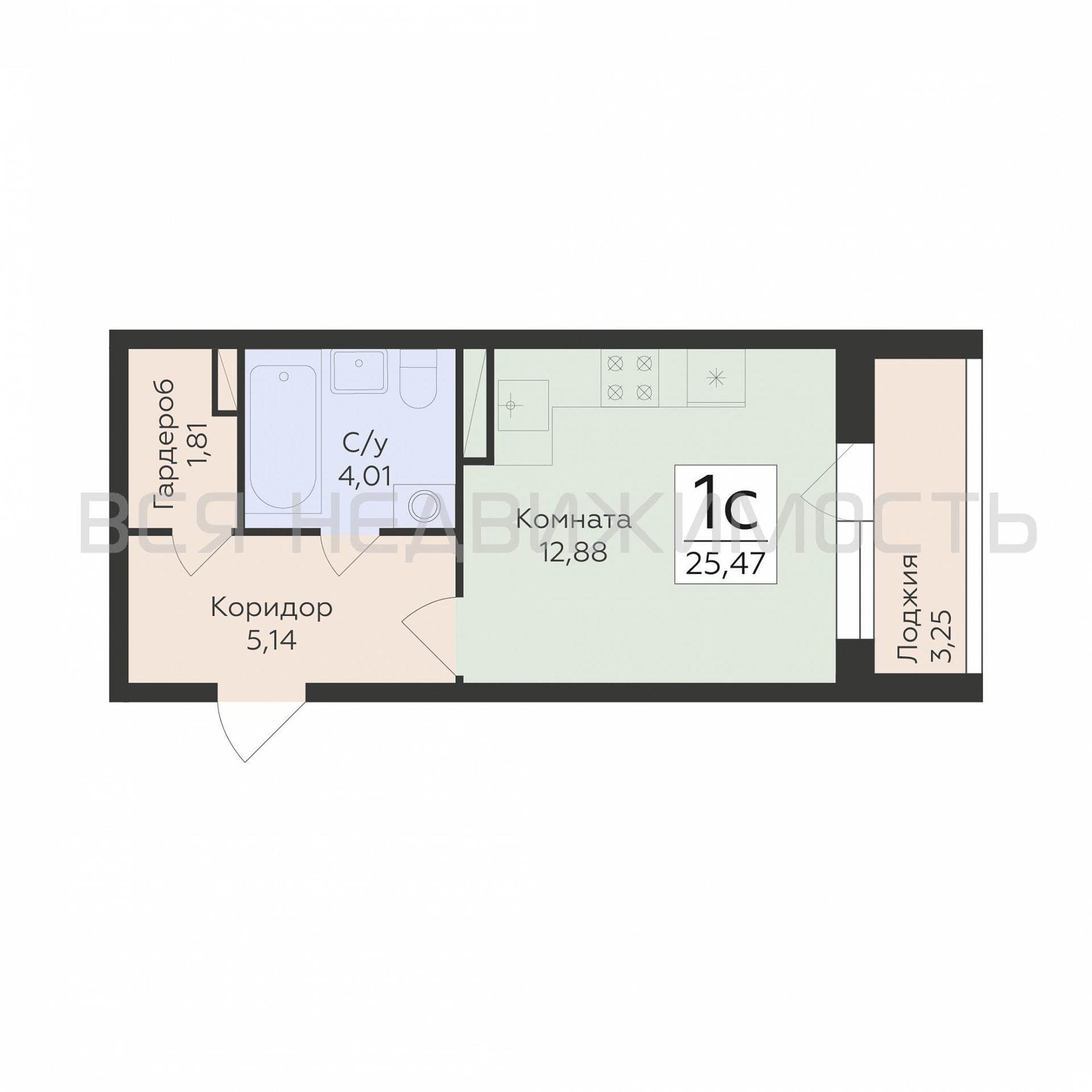 Квартиры-студии, 25.47 м² 6/12 этаж ID объекта 100104470