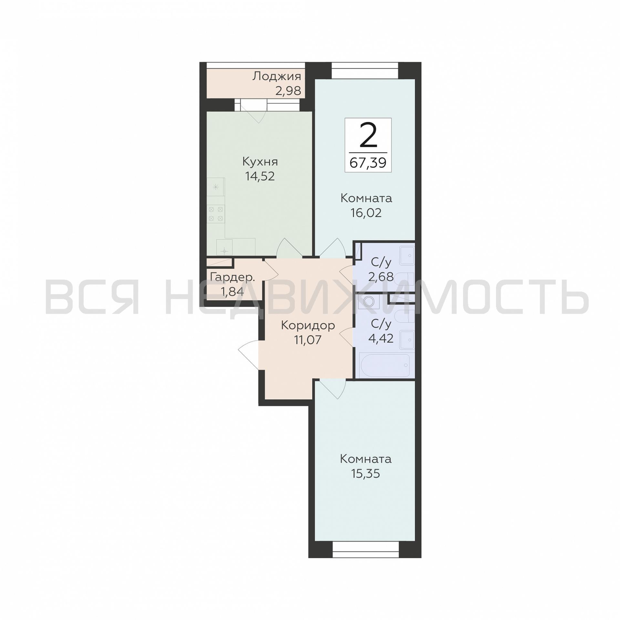 2-комнатная квартира, 67.39 м² 7/12 этаж ID объекта 100104531