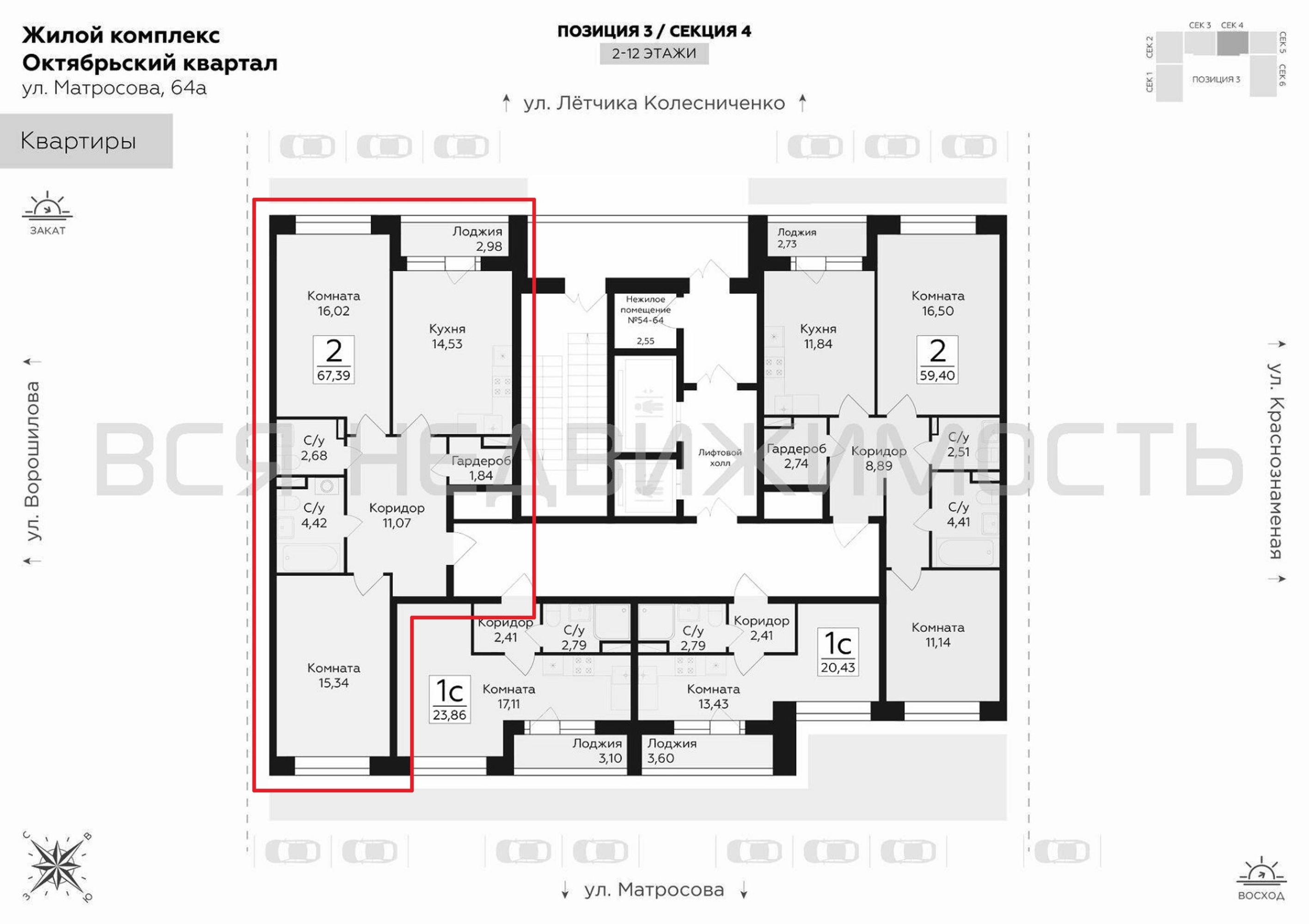 2-комнатная квартира, 67.39 м² 7/12 этаж ID объекта 100104578
