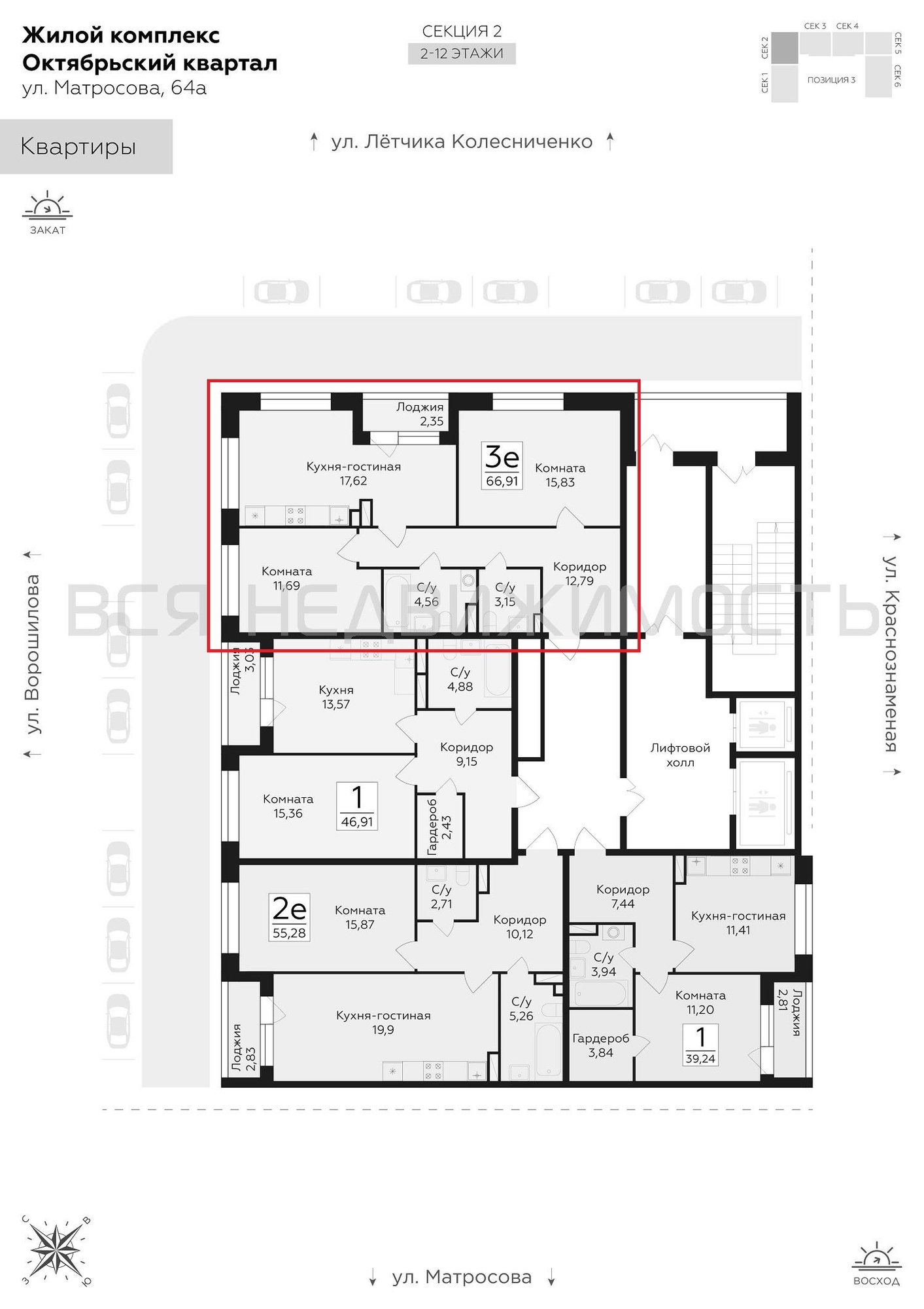 2-комнатная квартира, 66.91 м² 8/12 этаж ID объекта 100104676