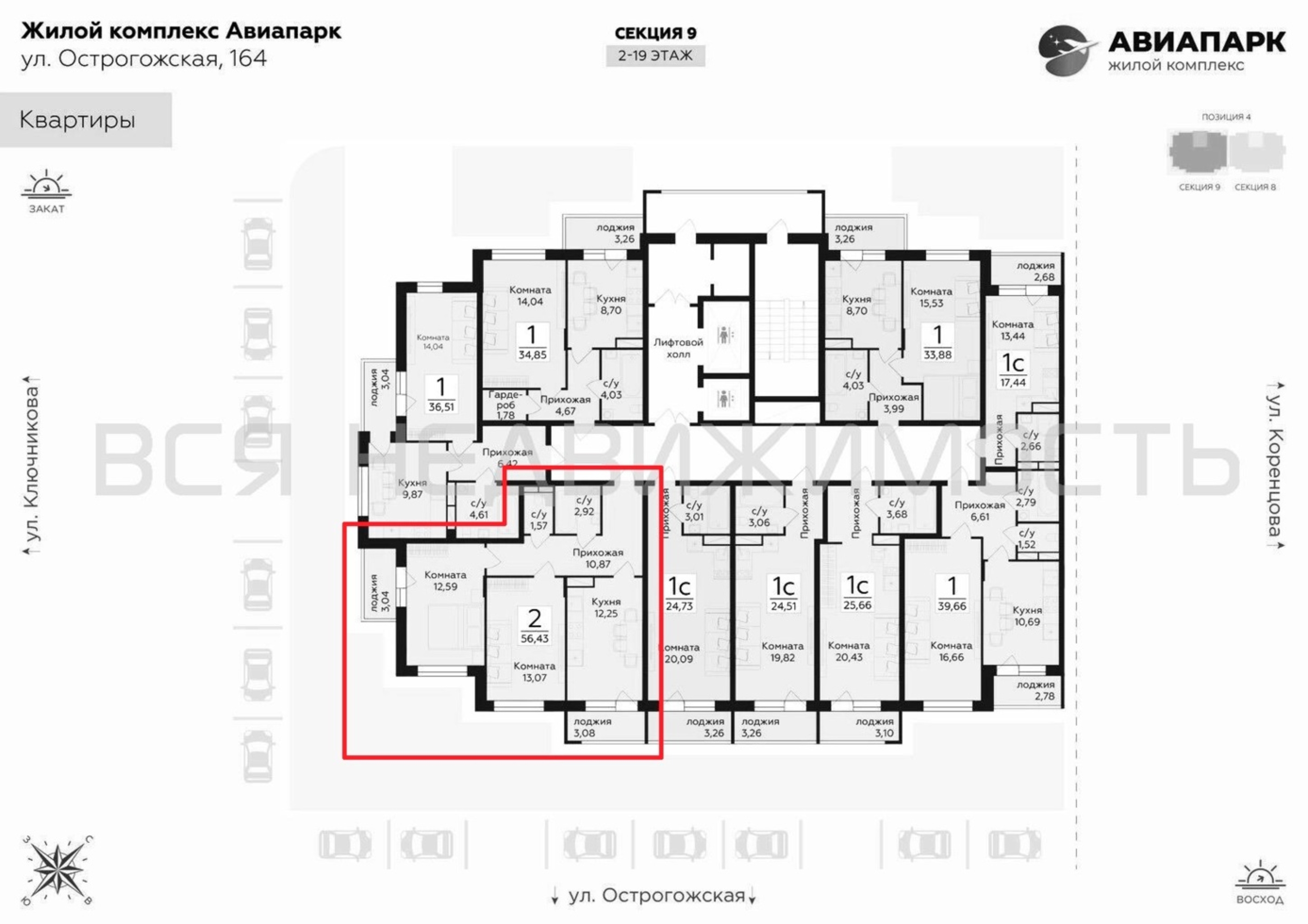 2-комнатная квартира, 56.43 м² 7/15 этаж ID объекта 100104895