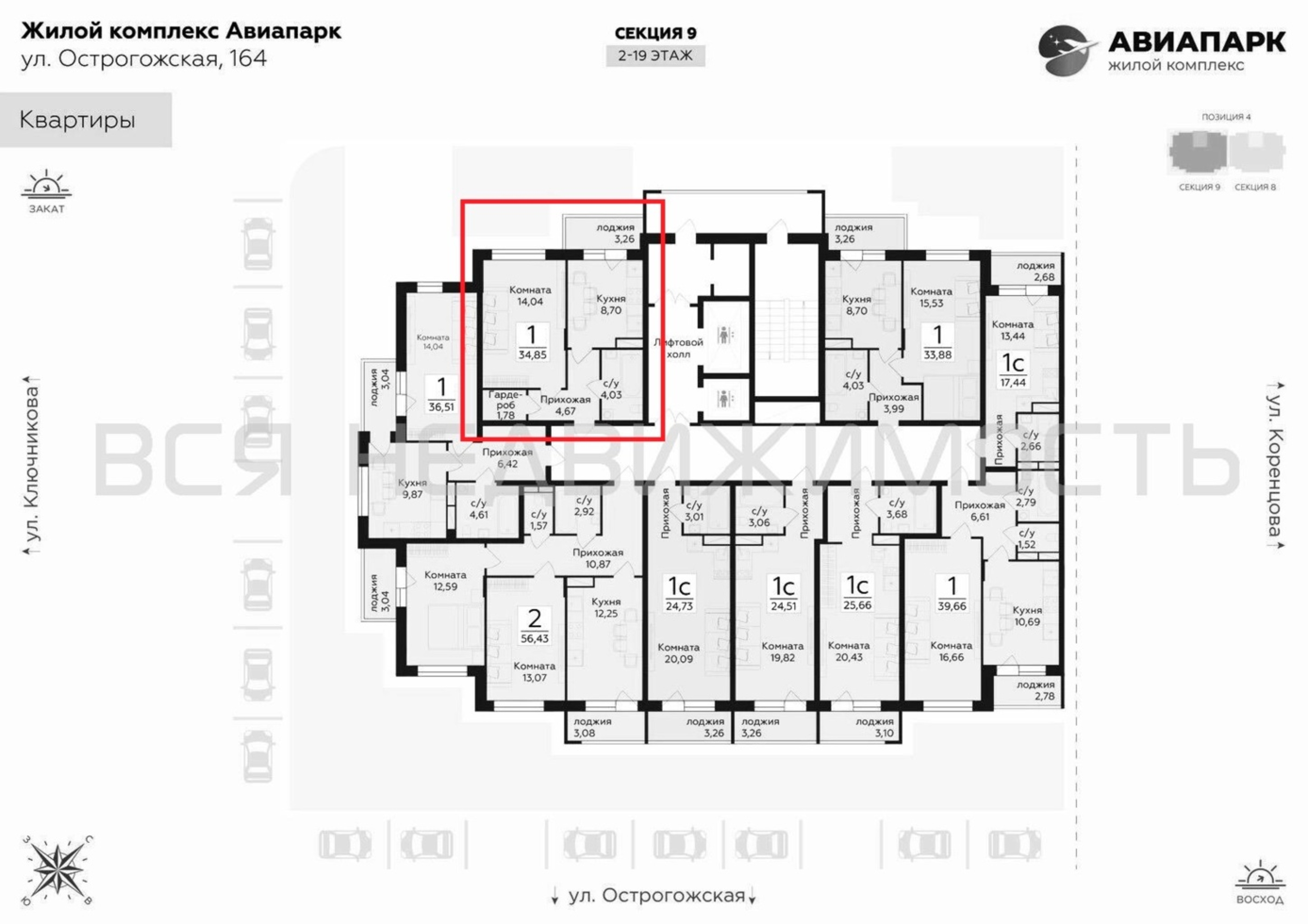 1-комнатная квартира, 34.85 м² 13/15 этаж ID объекта 100104951