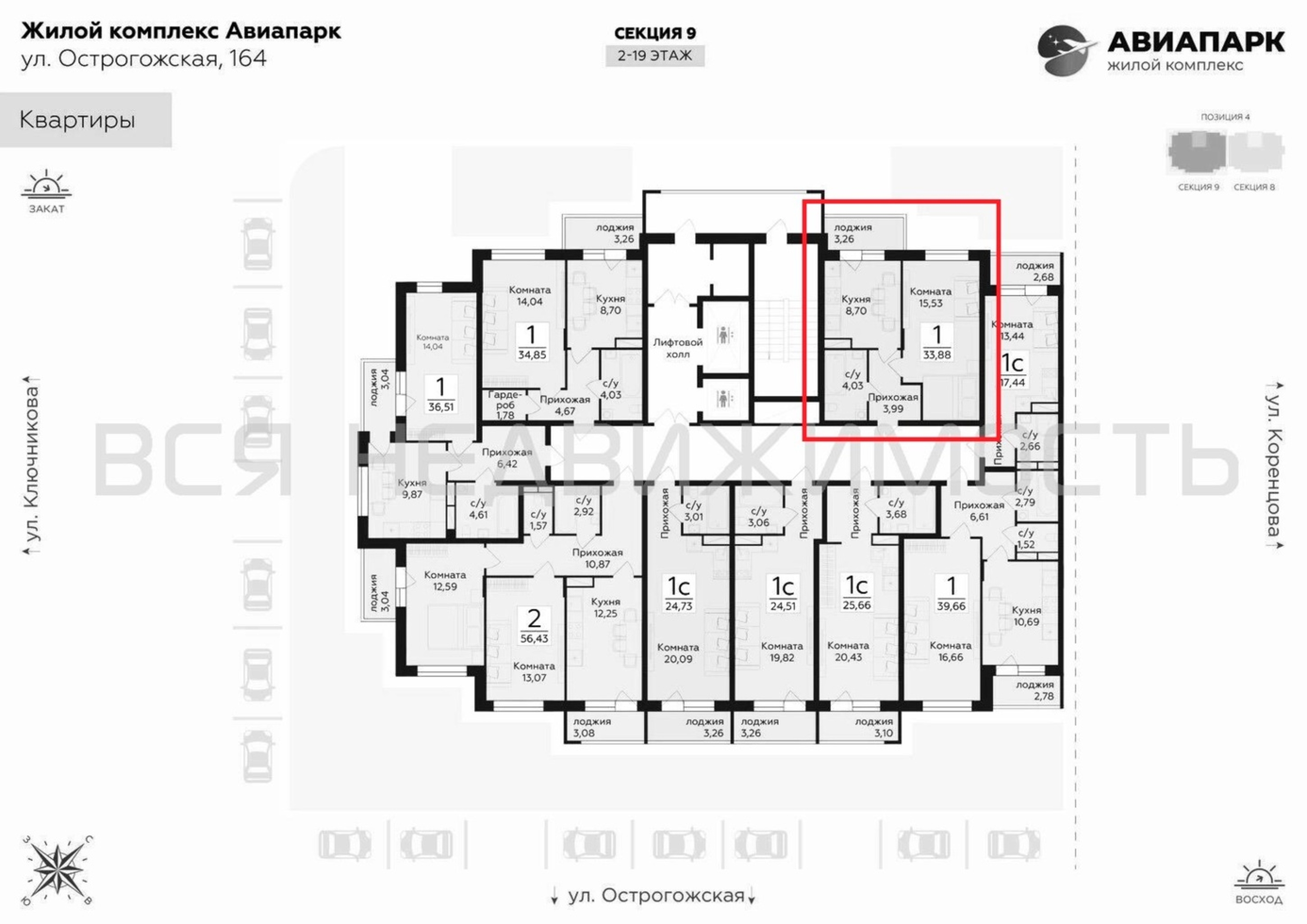 1-комнатная квартира, 33.88 м² 14/15 этаж ID объекта 100104952