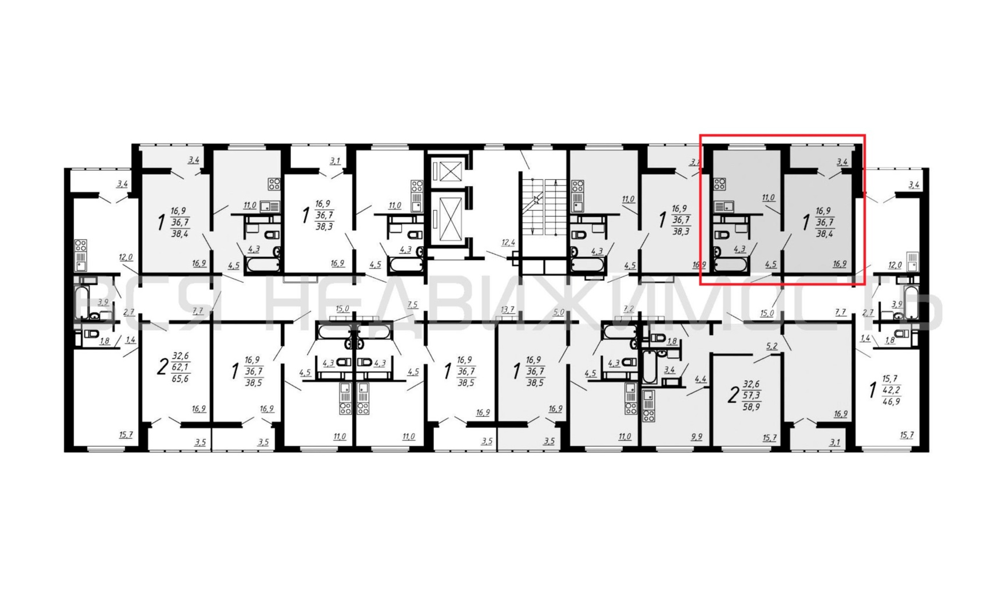 1-комнатная квартира, 38.40 м² 4/16 этаж ID объекта 100105161