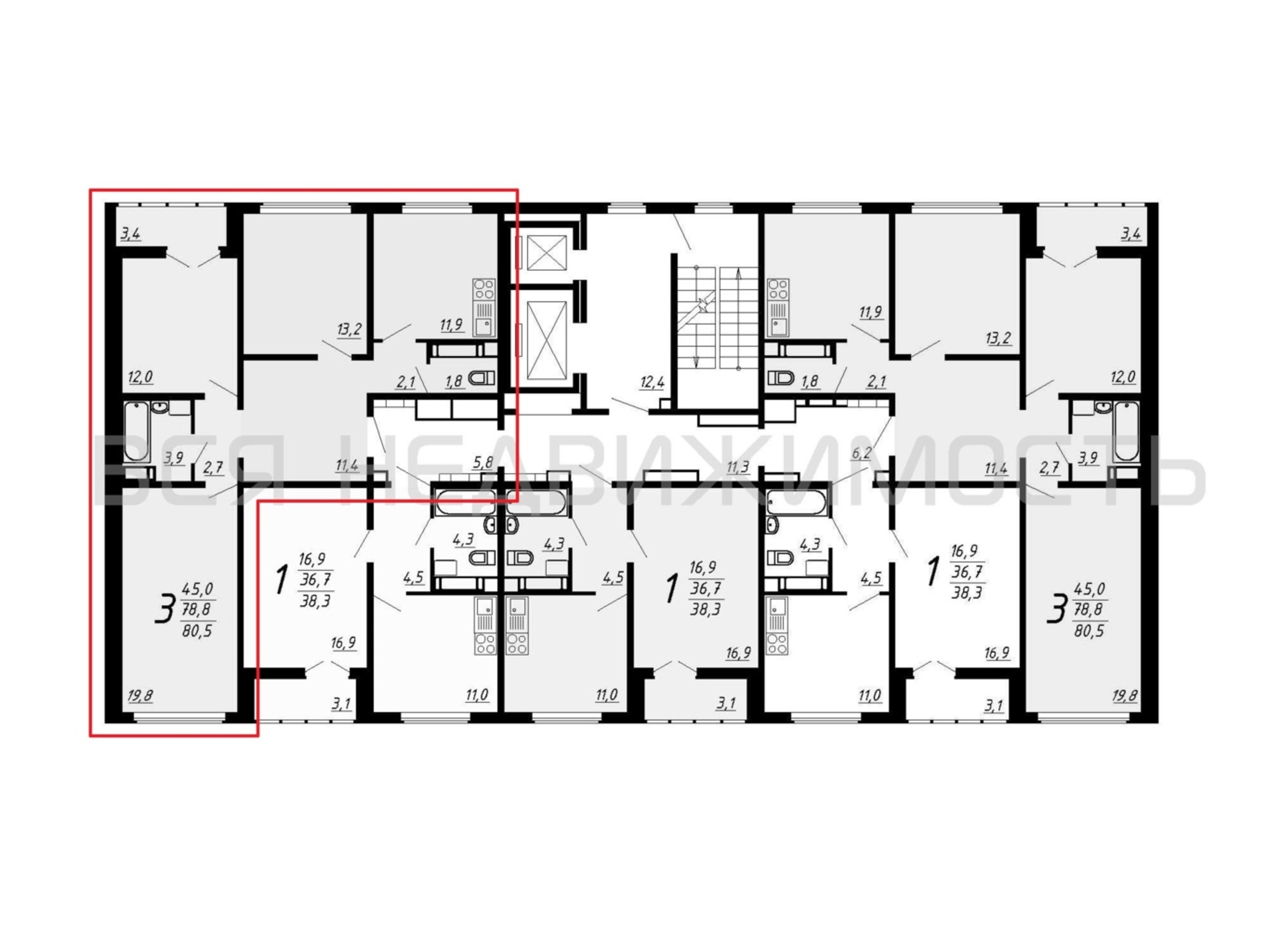 3-комнатная квартира, 80.50 м² 6/16 этаж ID объекта 100105318