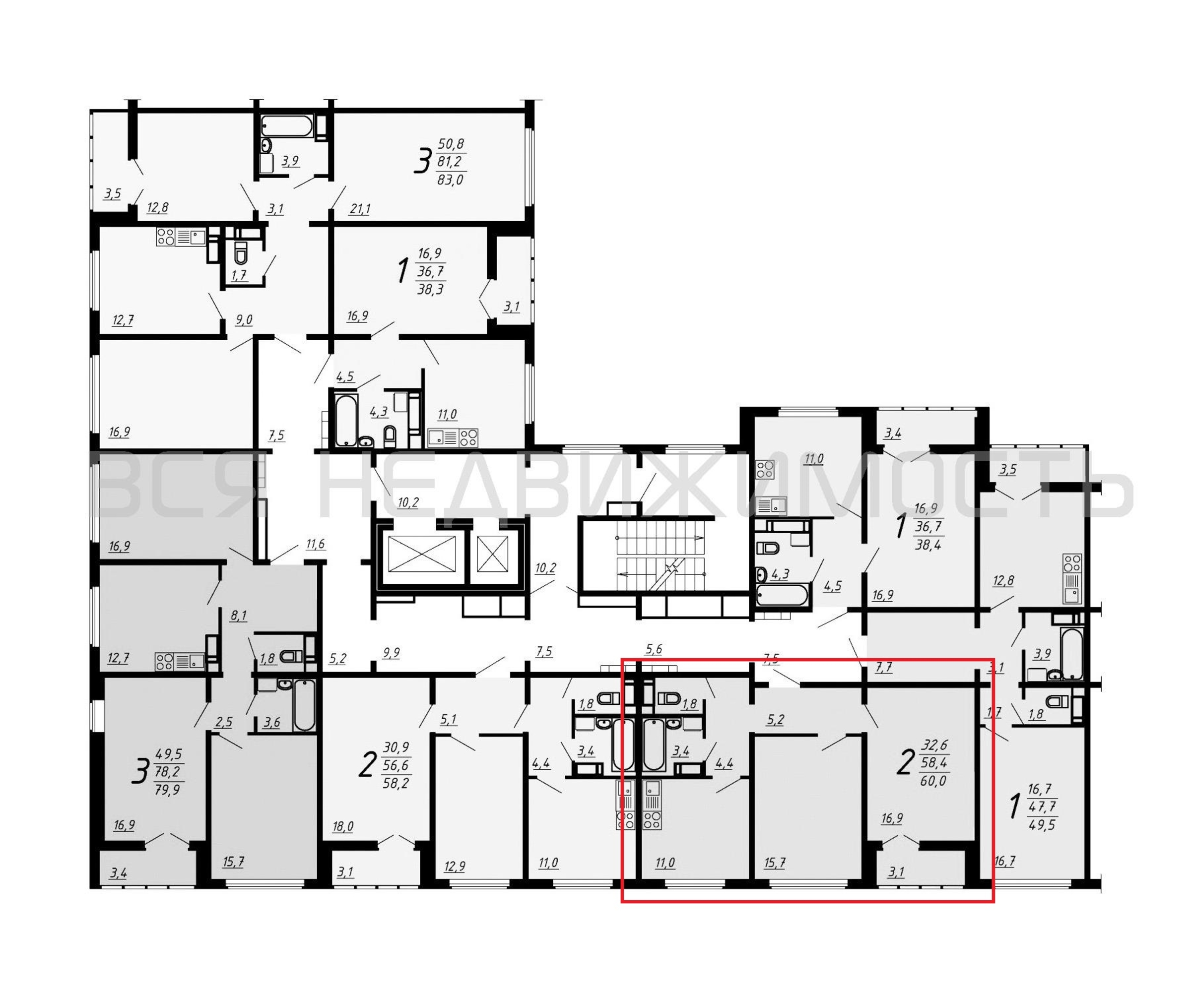 2-комнатная квартира, 60.00 м² 3/17 этаж ID объекта 100105553