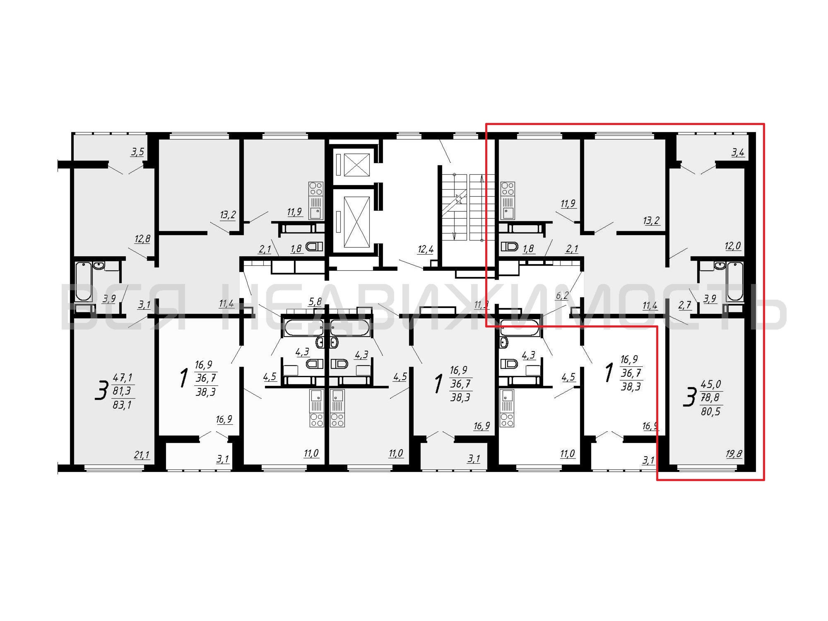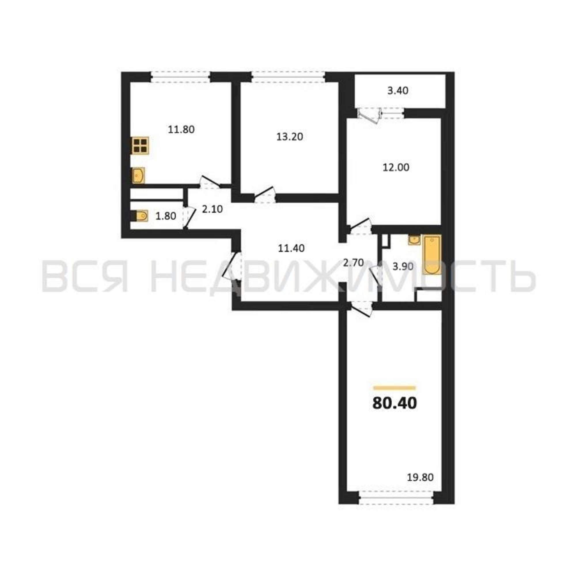 3-комнатная квартира, 80.40 м² 2/17 этаж ID объекта 100105744