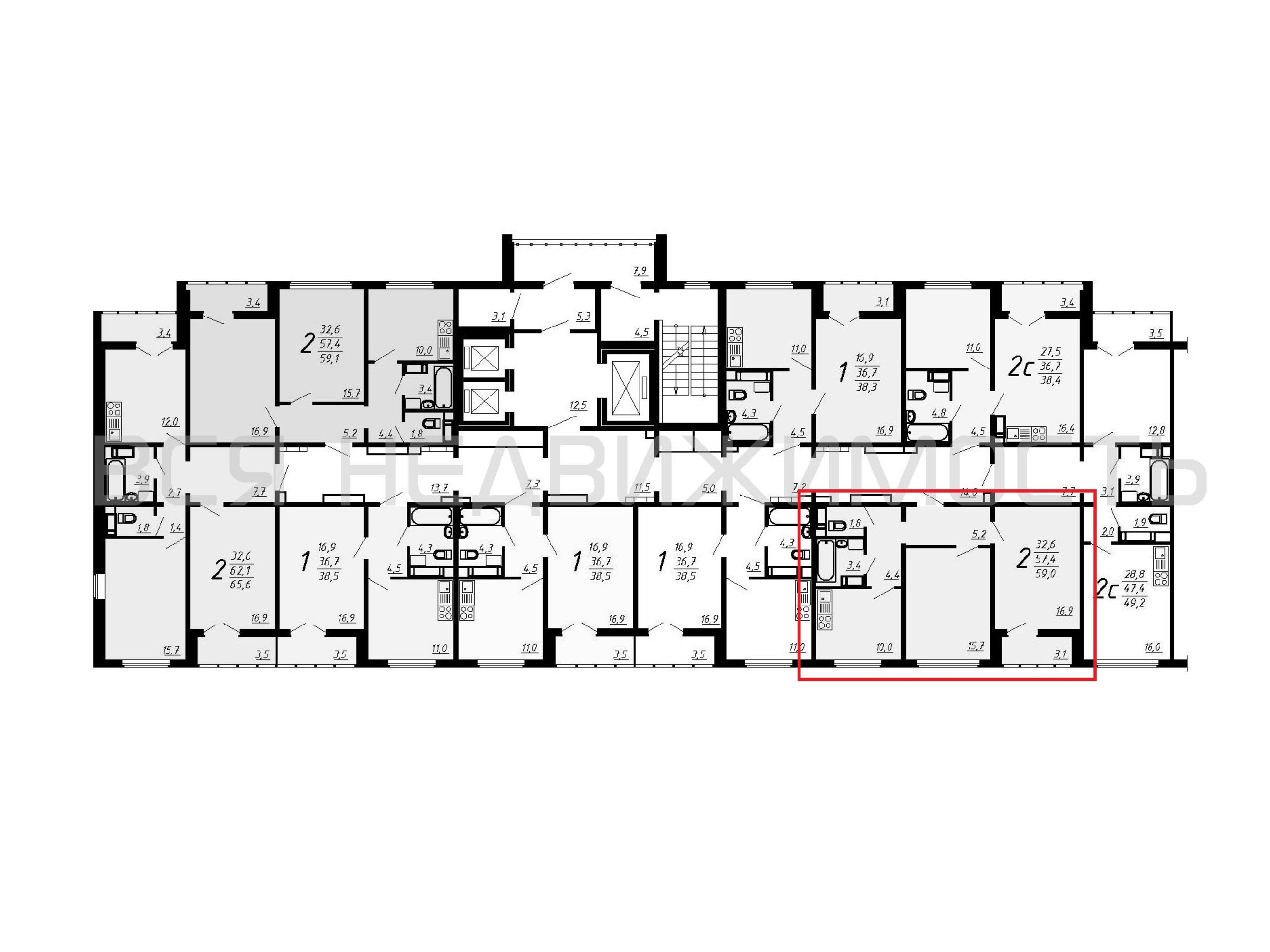2-комнатная квартира, 59.00 м² 11/20 этаж ID объекта 100105997