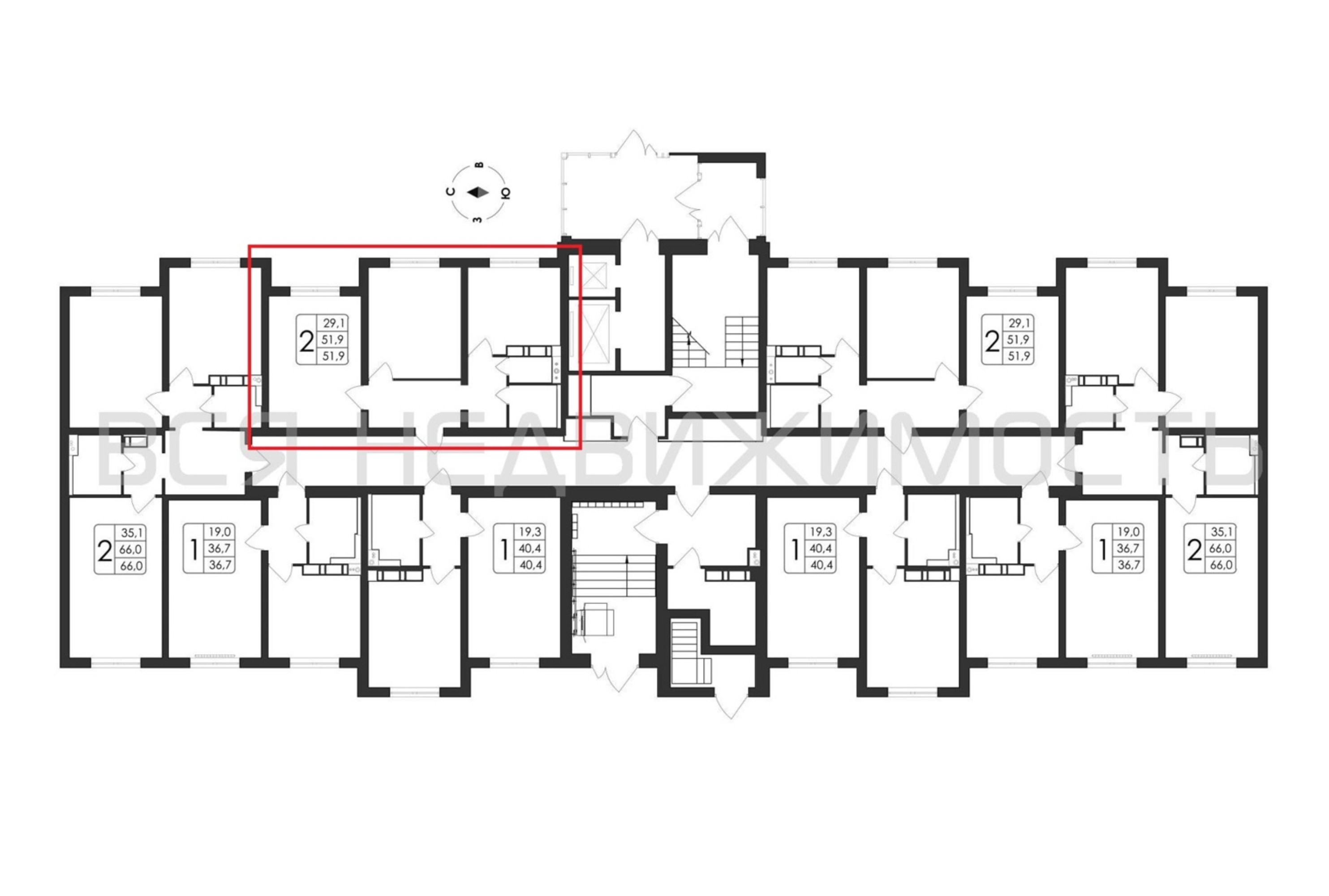 2-комнатная квартира, 51.90 м² 1/17 этаж ID объекта 100106273