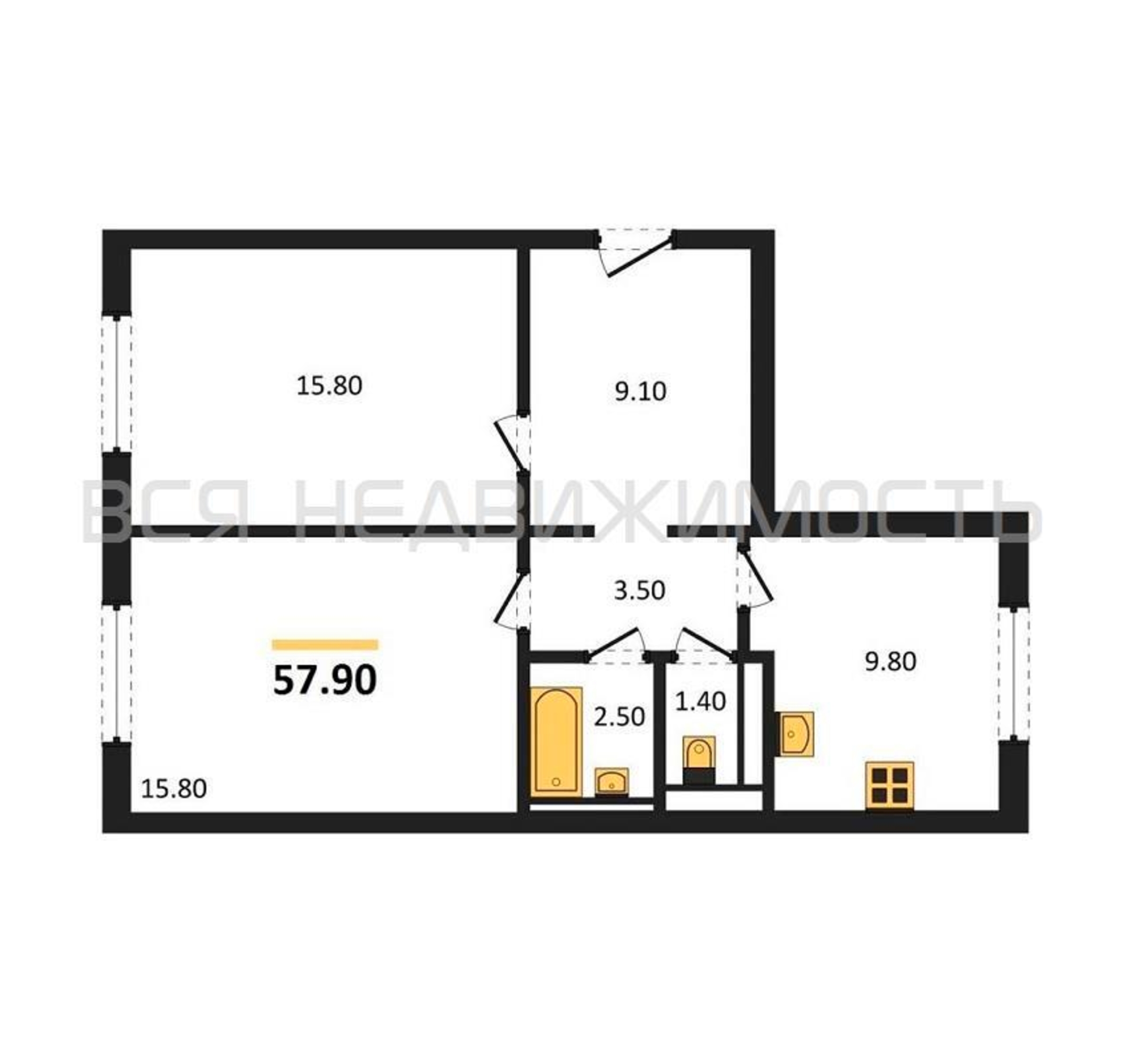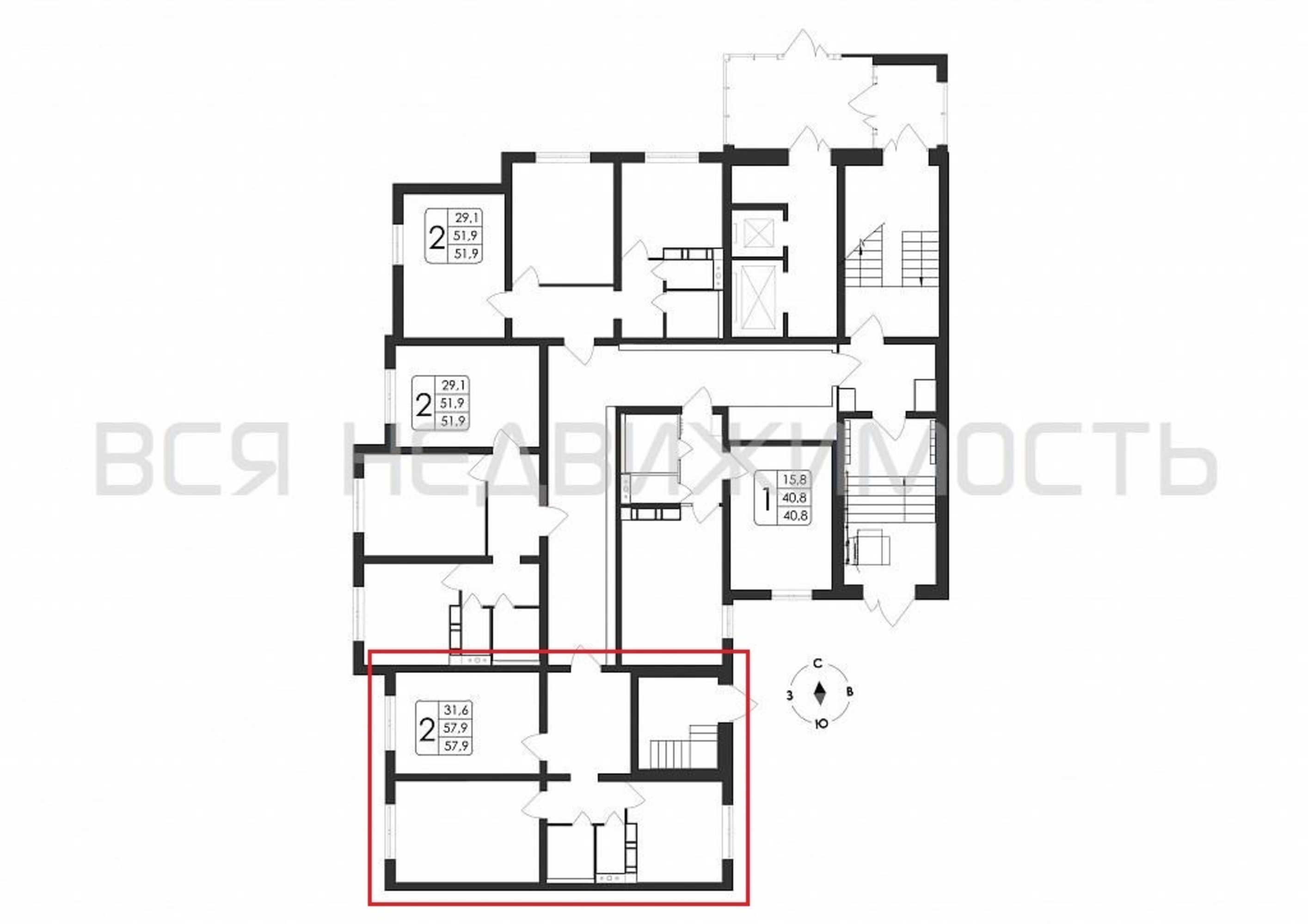 2-комнатная квартира, 57.90 м² 1/17 этаж ID объекта 100106419