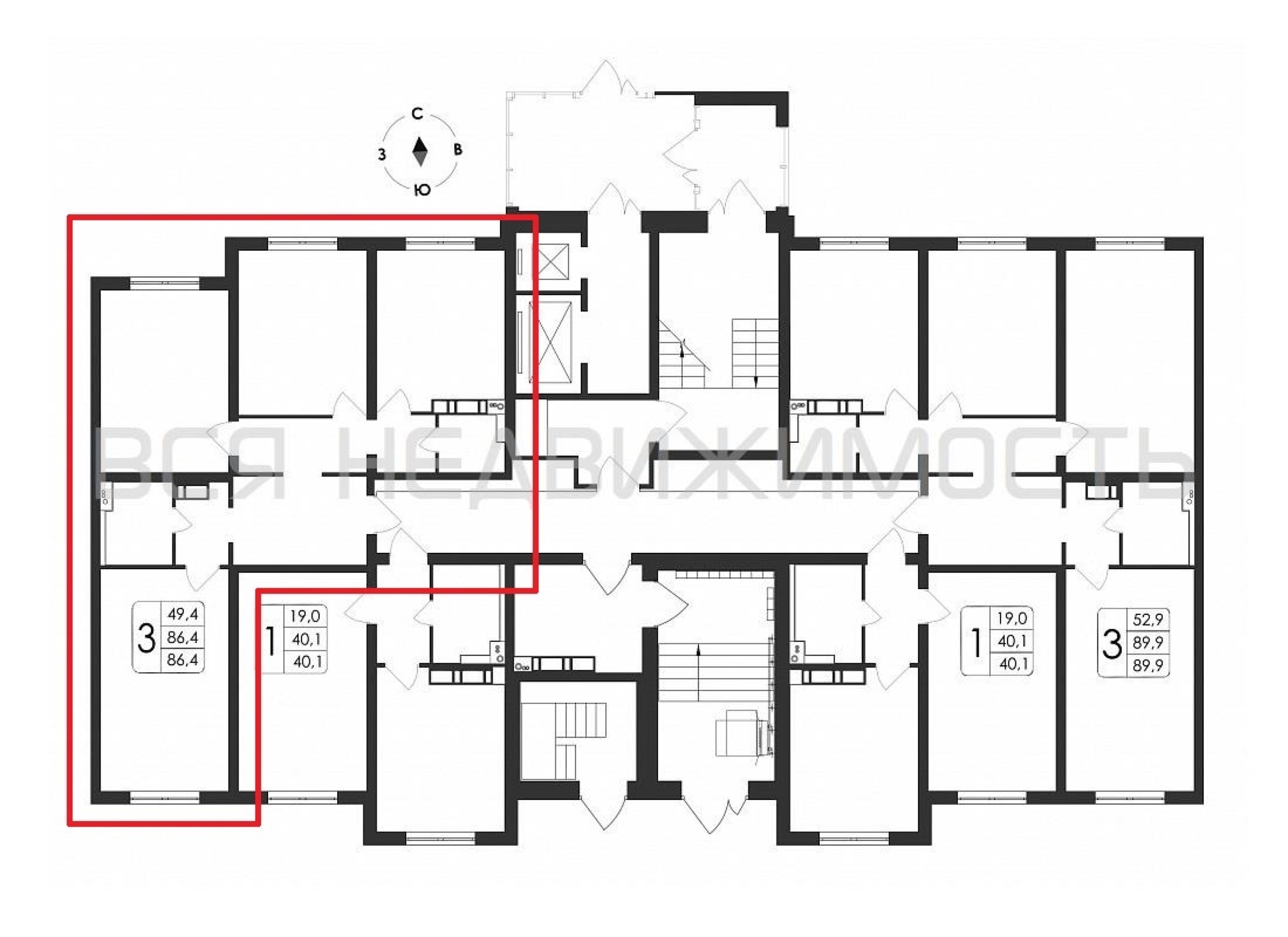 3-комнатная квартира, 86.40 м² 1/17 этаж ID объекта 100106573