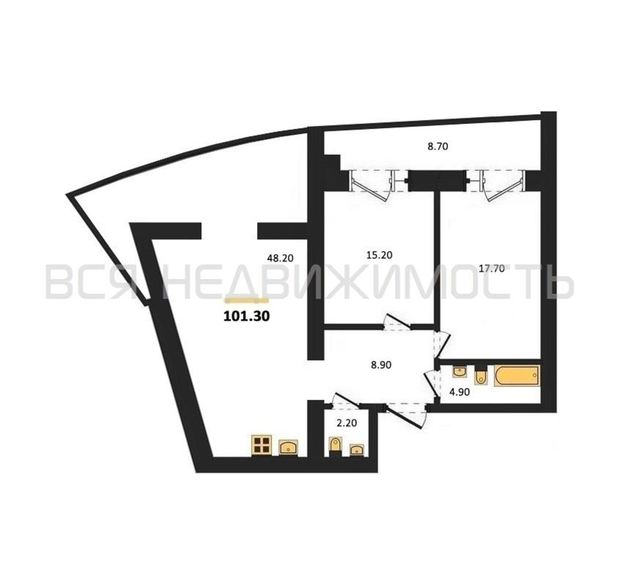 2-комнатная квартира, 101.30 м² 6/14 этаж ID объекта 100106836