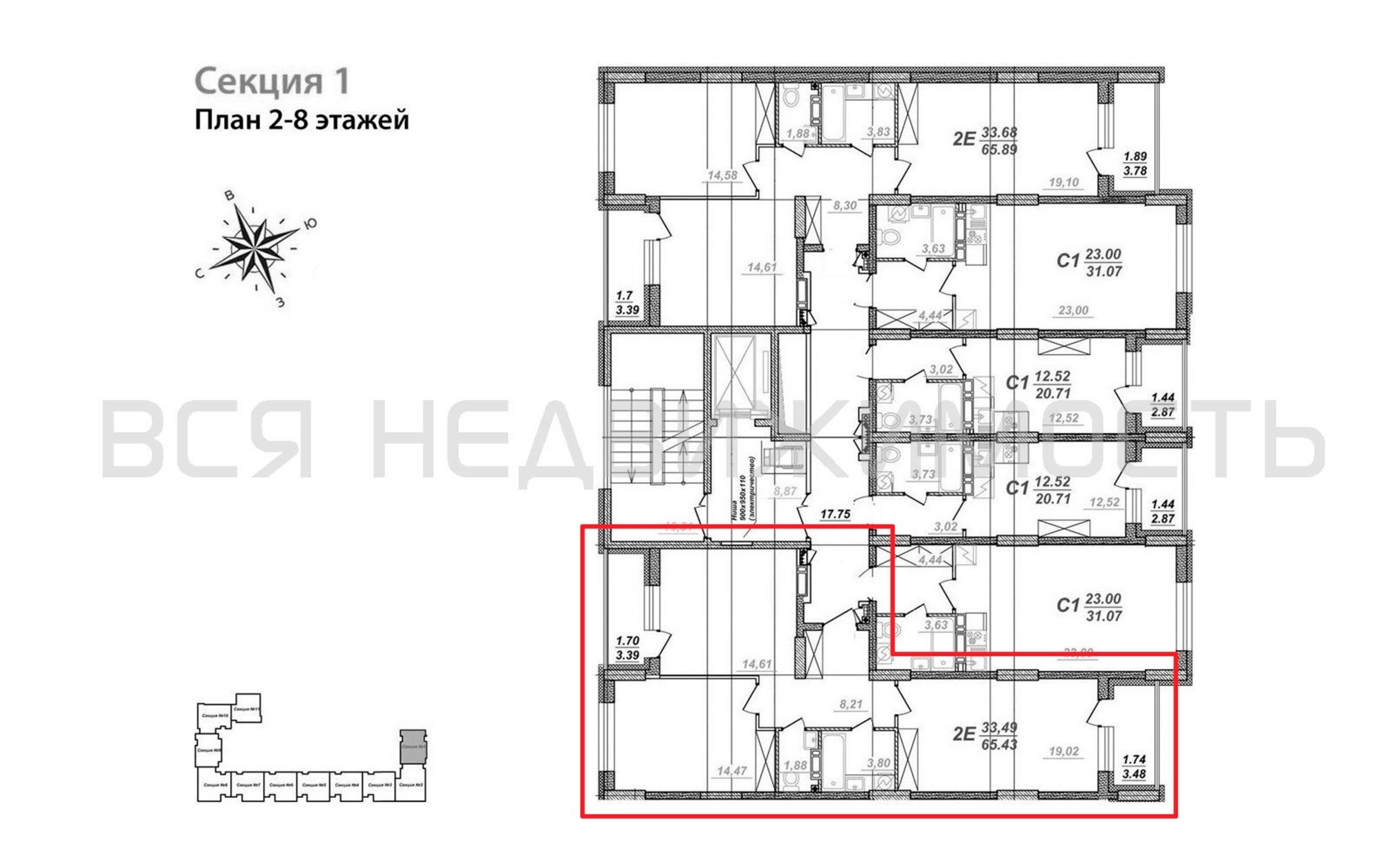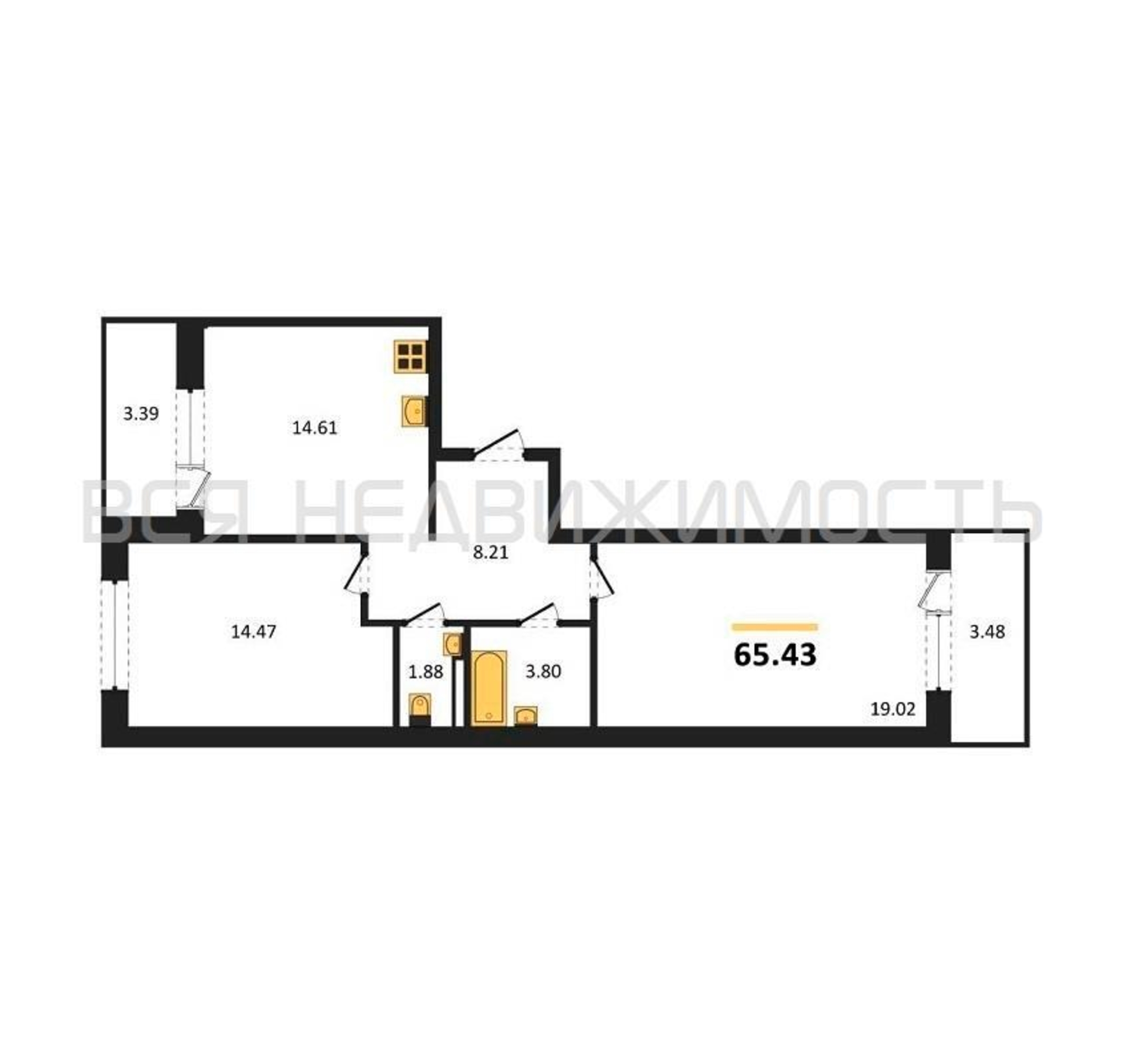 2-комнатная квартира, 65.43 м² 8/8 этаж ID объекта 100107251