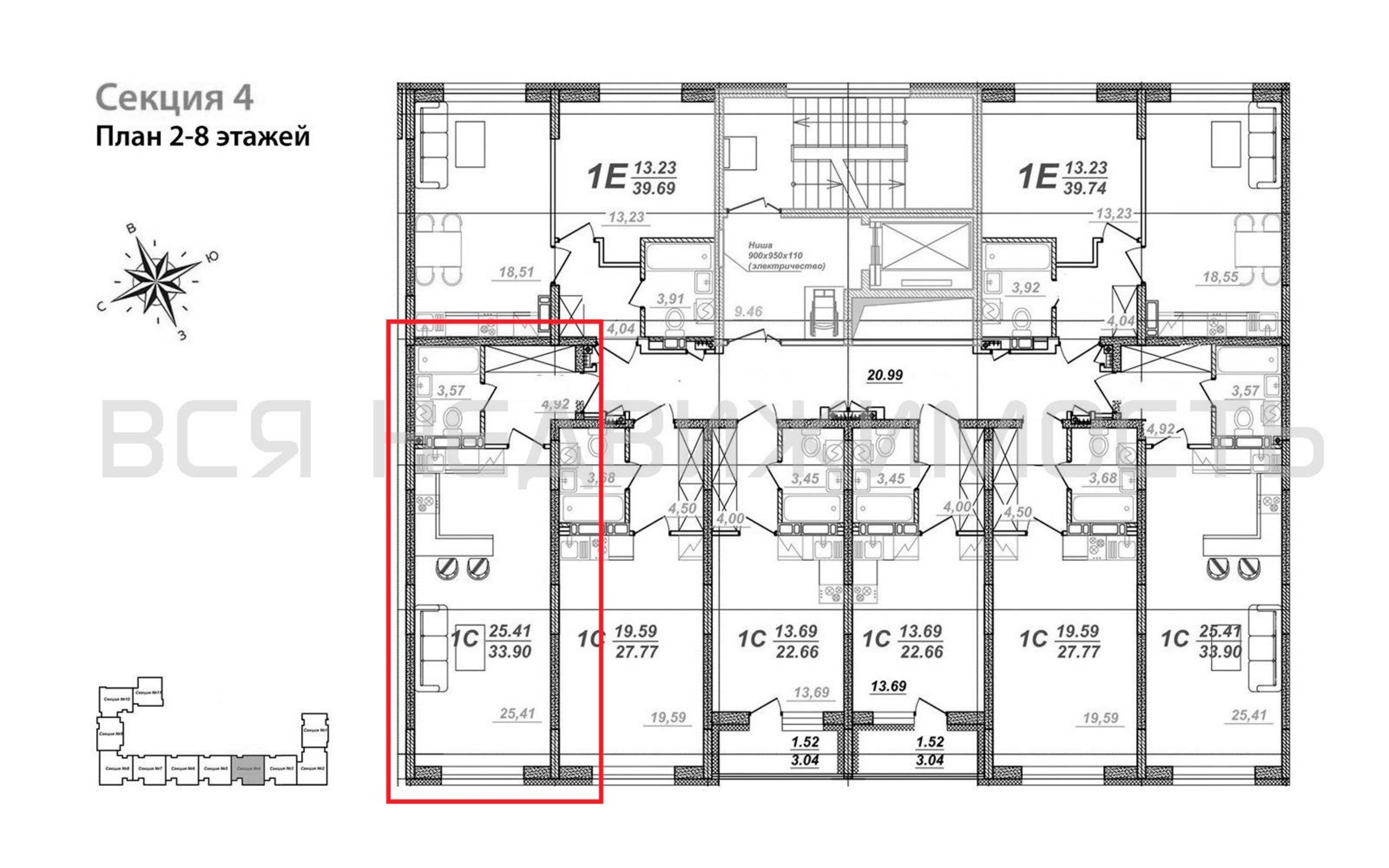 Квартиры-студии, 33.90 м² 4/8 этаж ID объекта 100107379