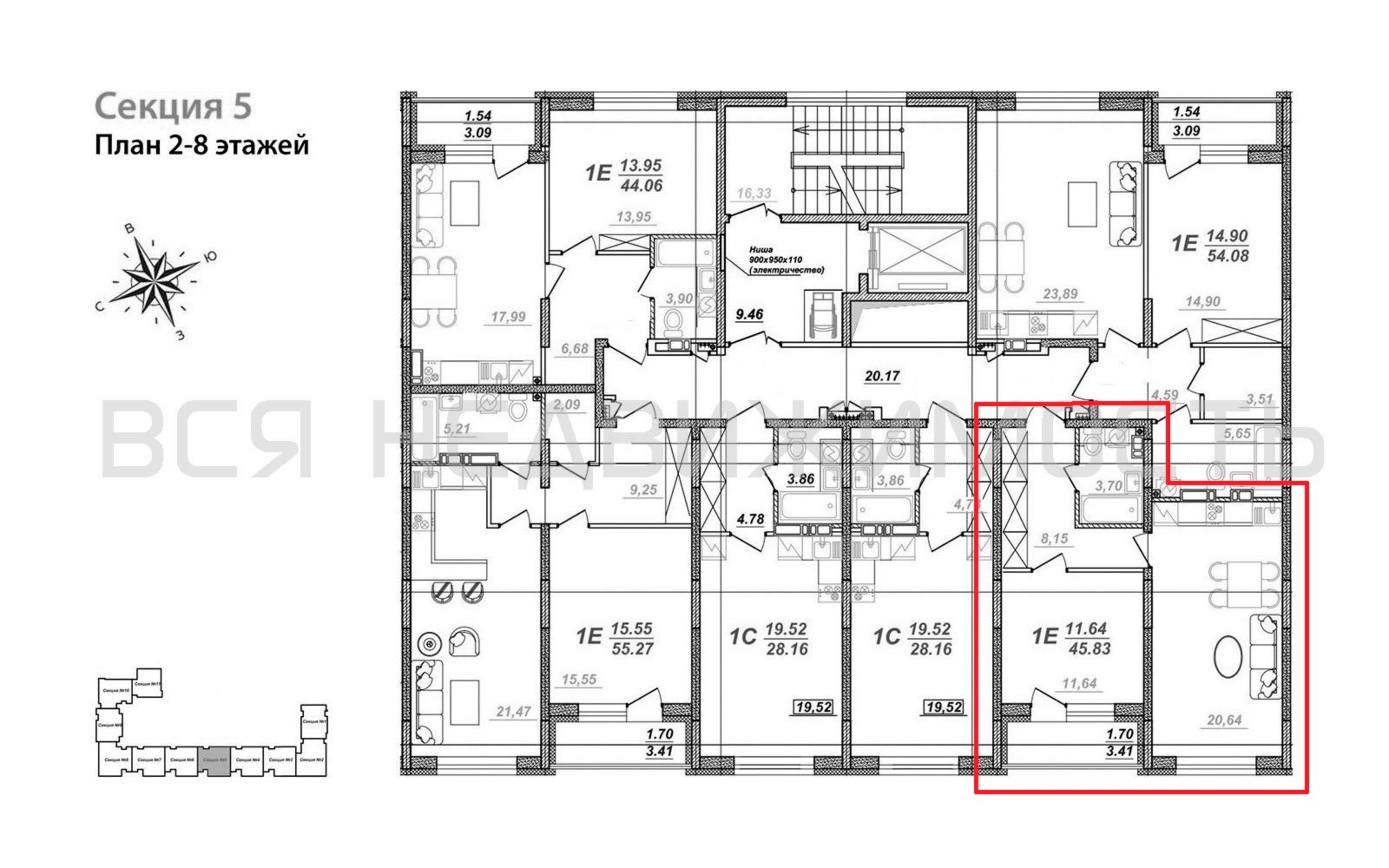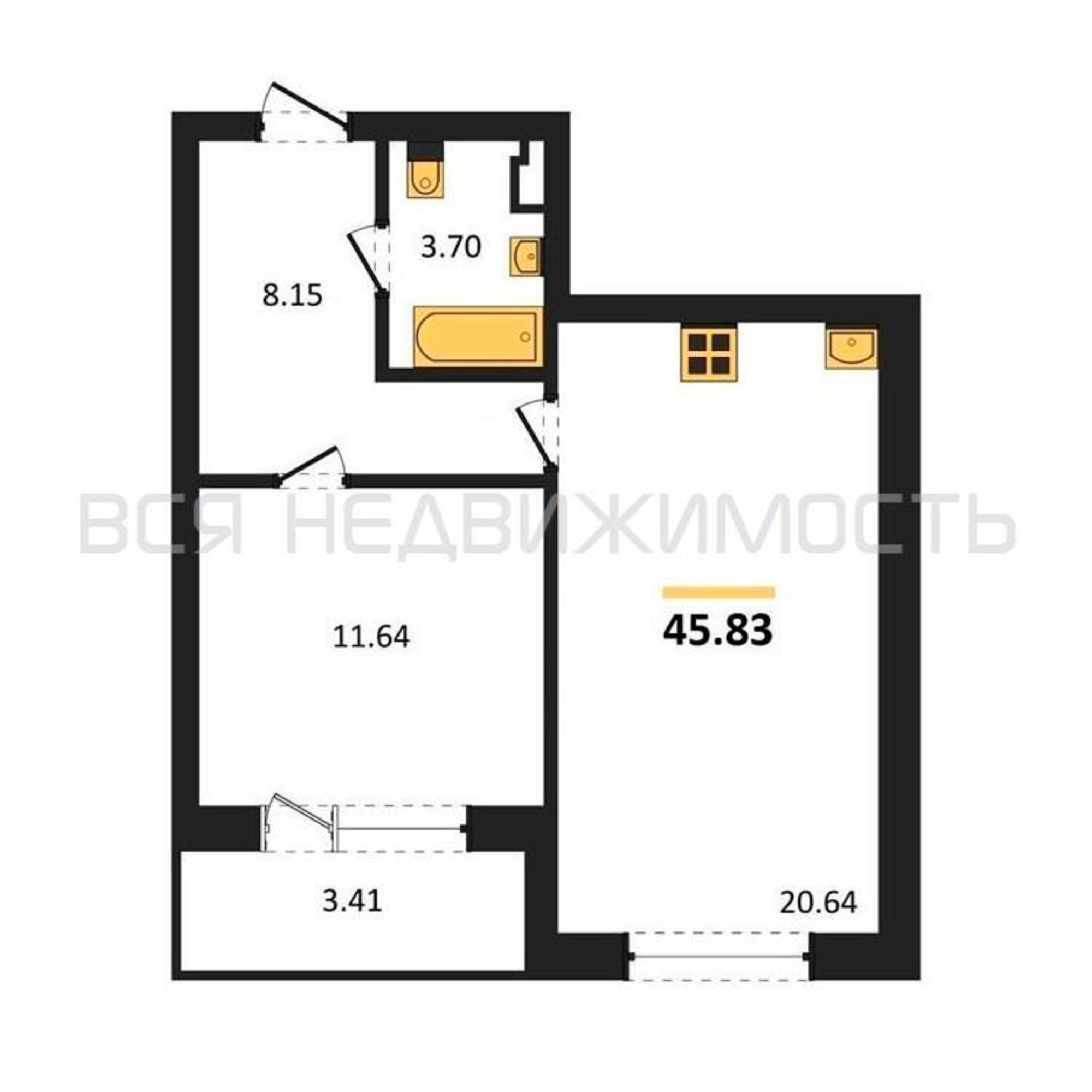 1-комнатная квартира, 45.83 м² 6/8 этаж ID объекта 100107438