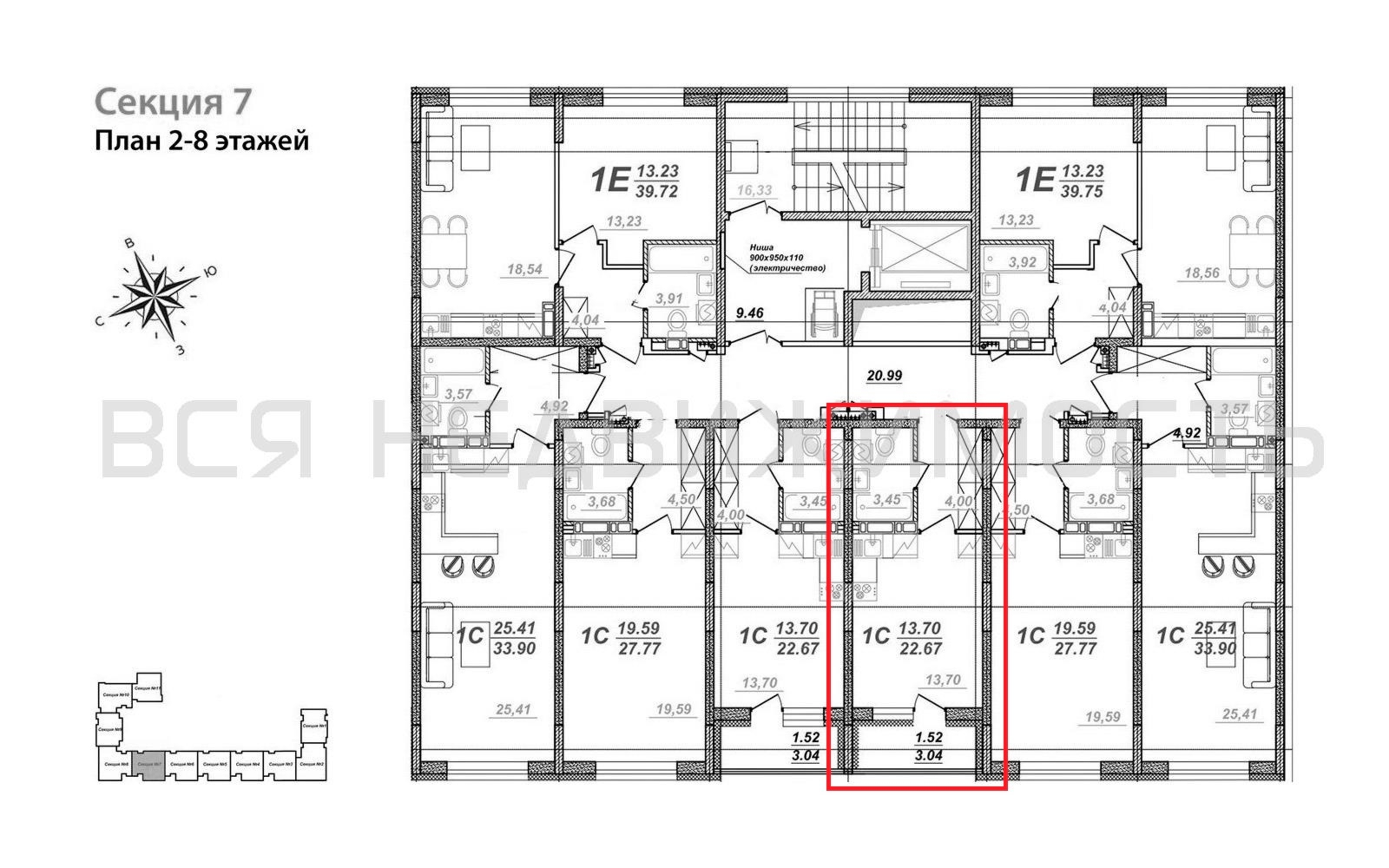 Квартиры-студии, 22.67 м² 8/8 этаж ID объекта 100107562