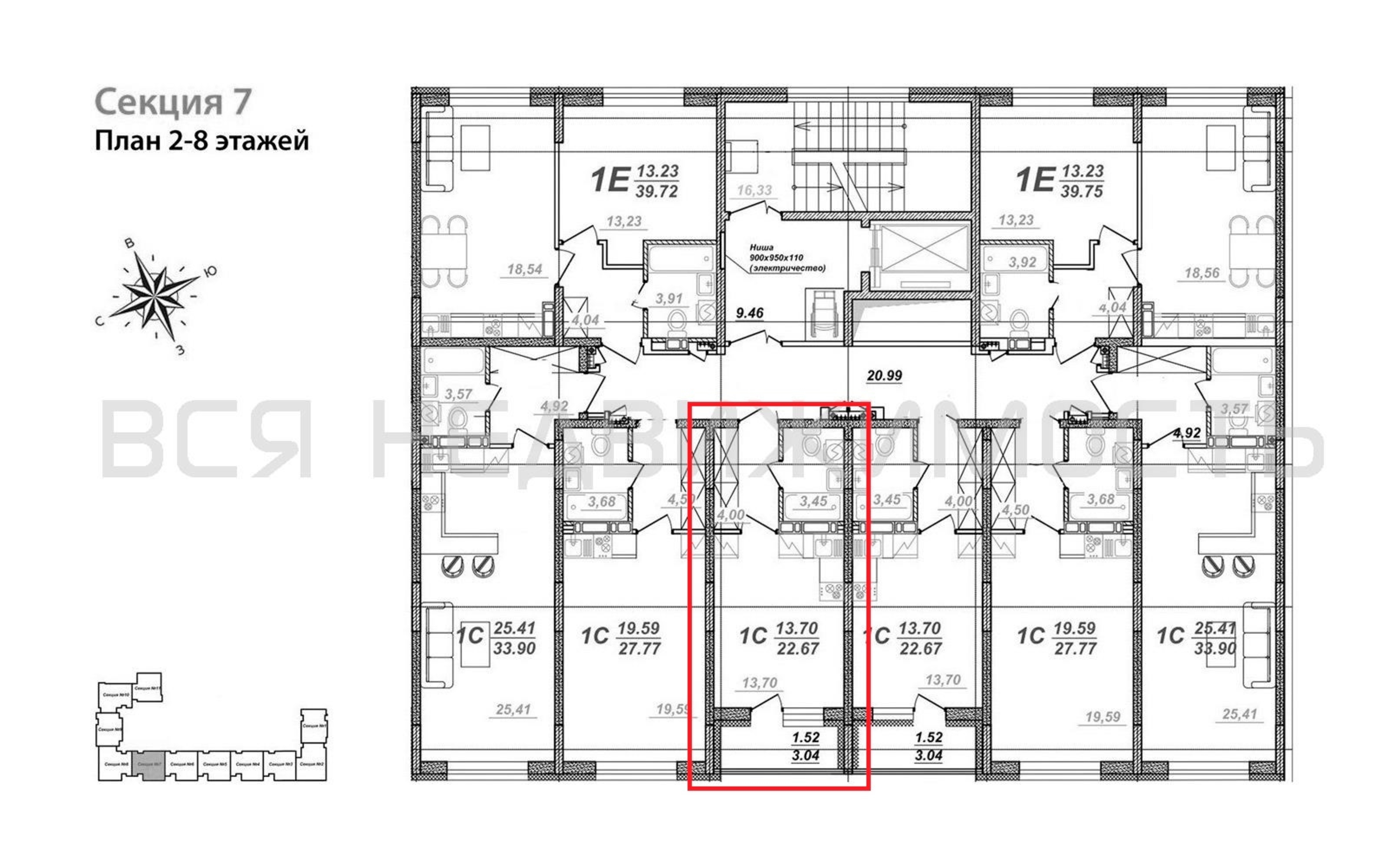 Квартиры-студии, 22.67 м² 8/8 этаж ID объекта 100107563