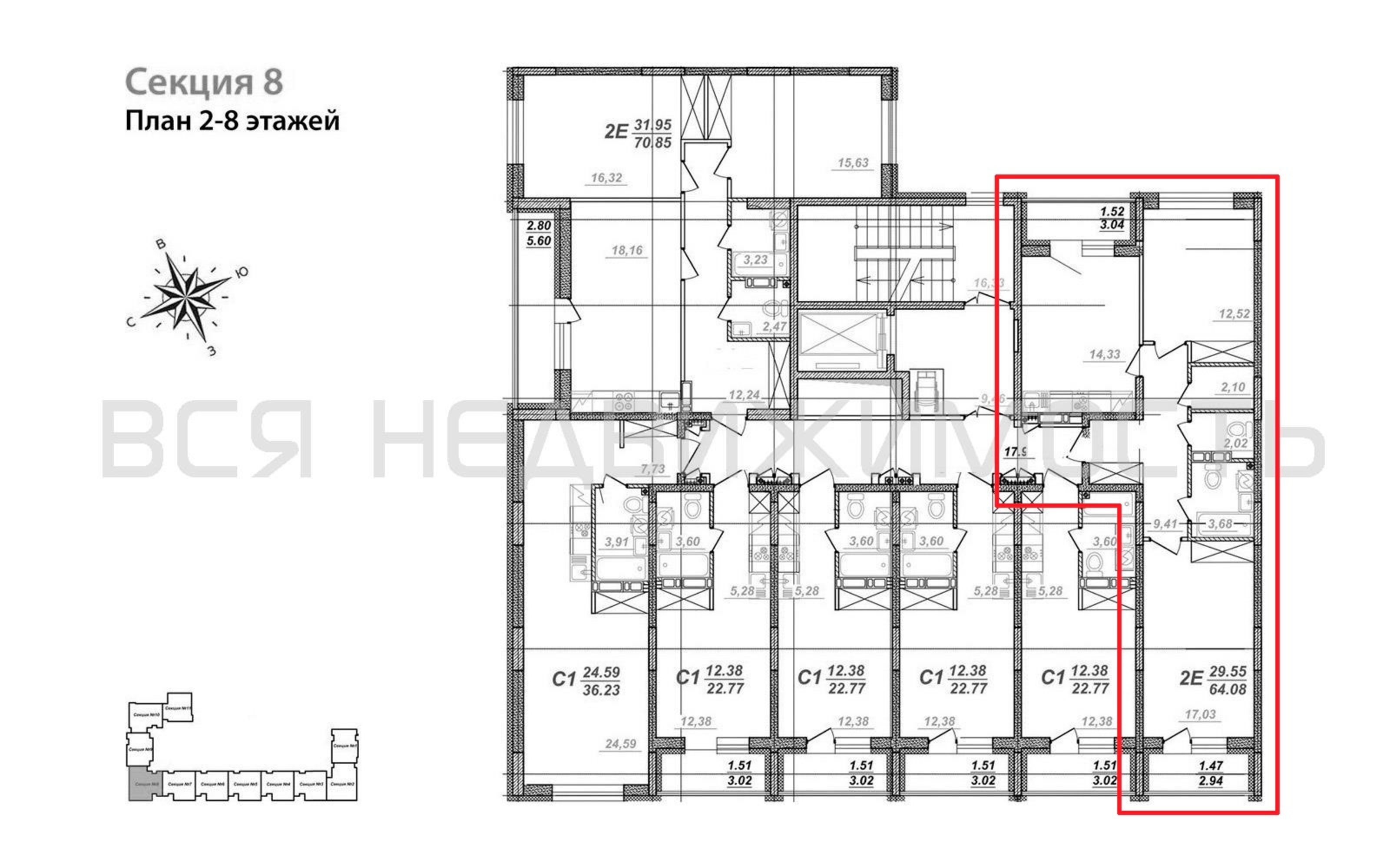 2-комнатная квартира, 64.08 м² 4/8 этаж ID объекта 100107581