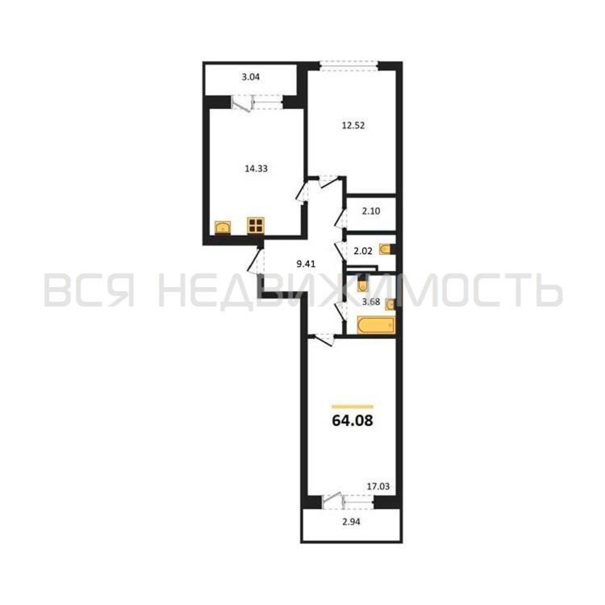 Строительная площадь64.08 м²