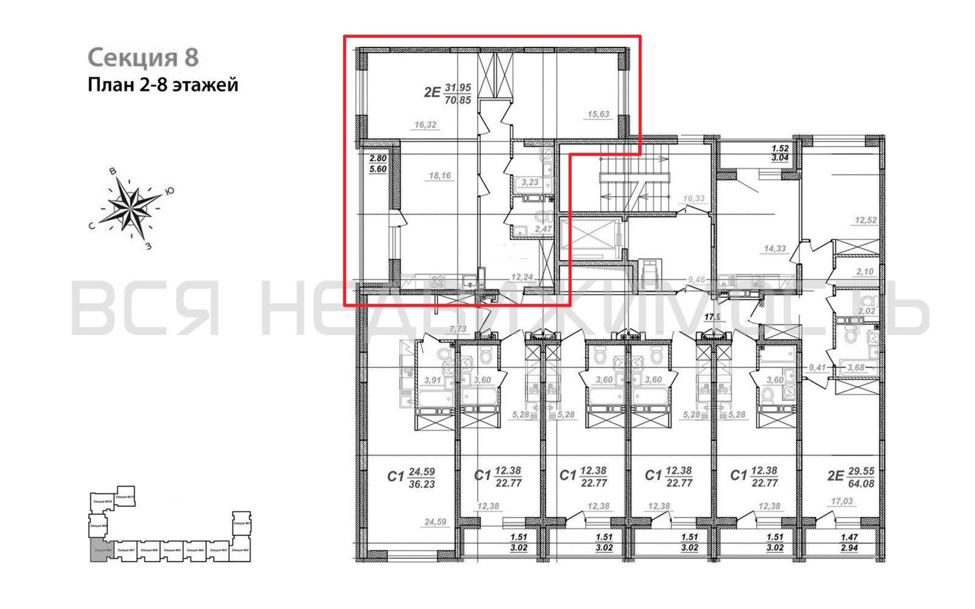 2-комнатная квартира, 70.85 м² 5/8 этаж ID объекта 100107594