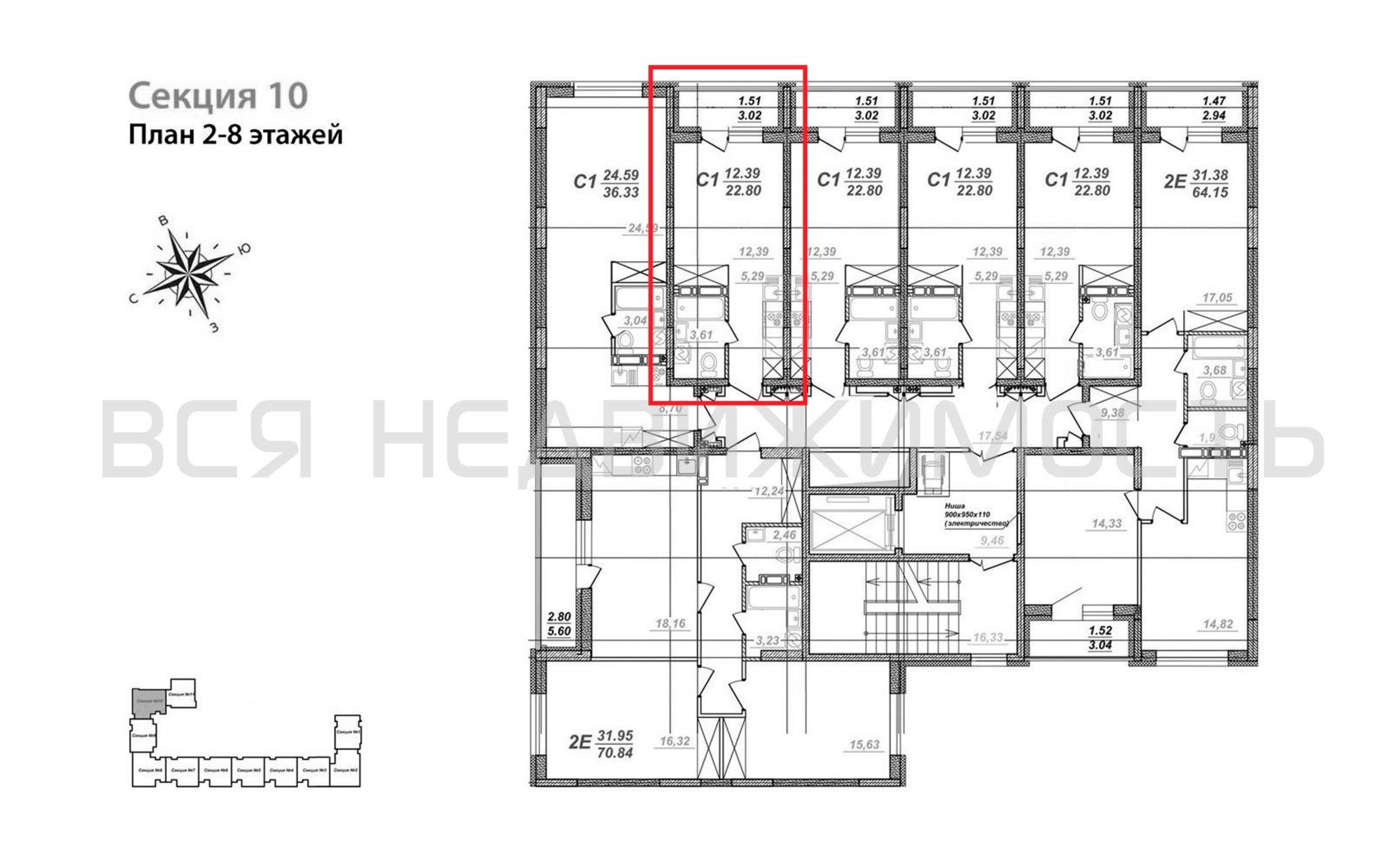 Квартиры-студии, 22.80 м² 5/8 этаж ID объекта 100107688