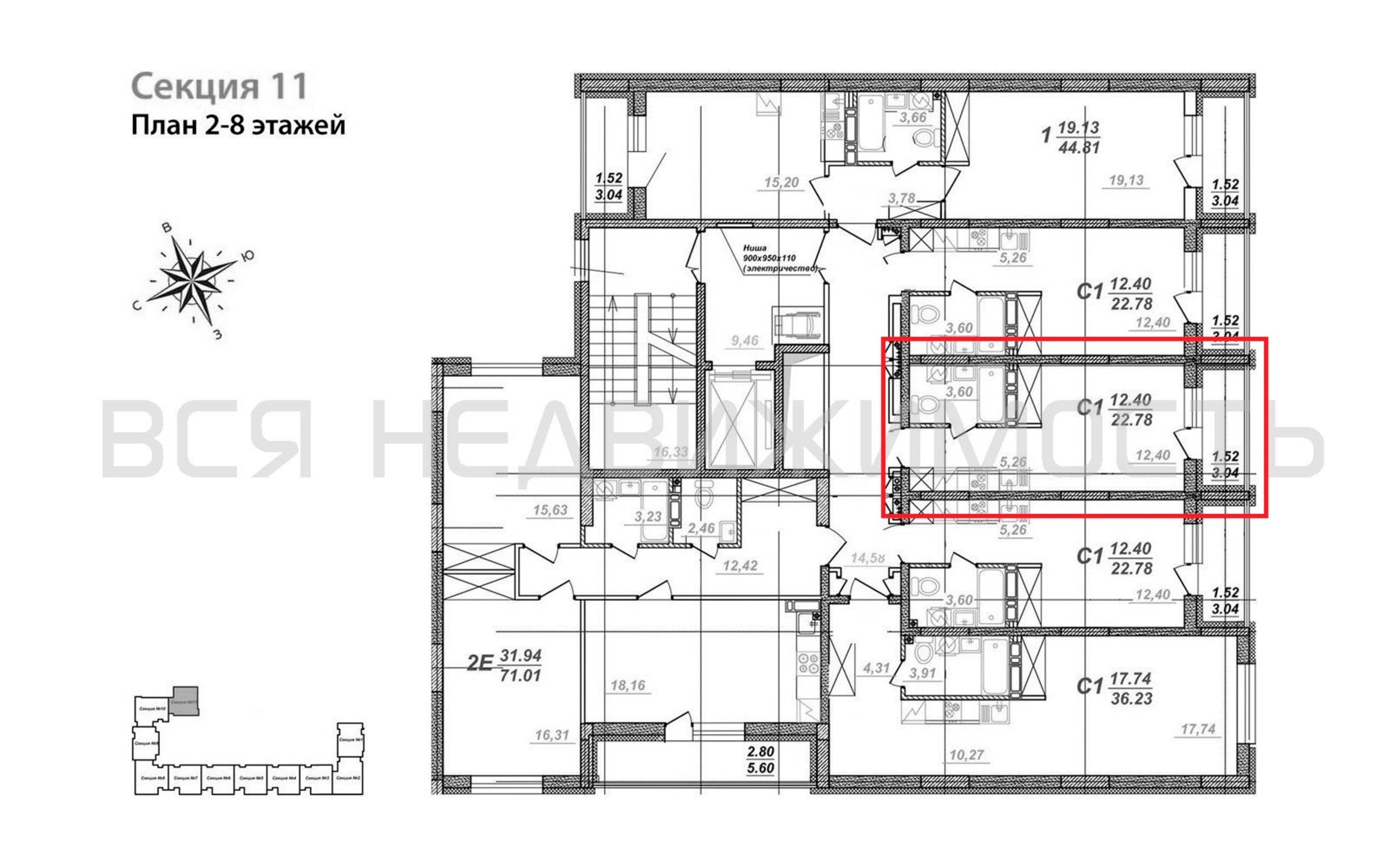 Квартиры-студии, 22.78 м² 6/8 этаж ID объекта 100107745