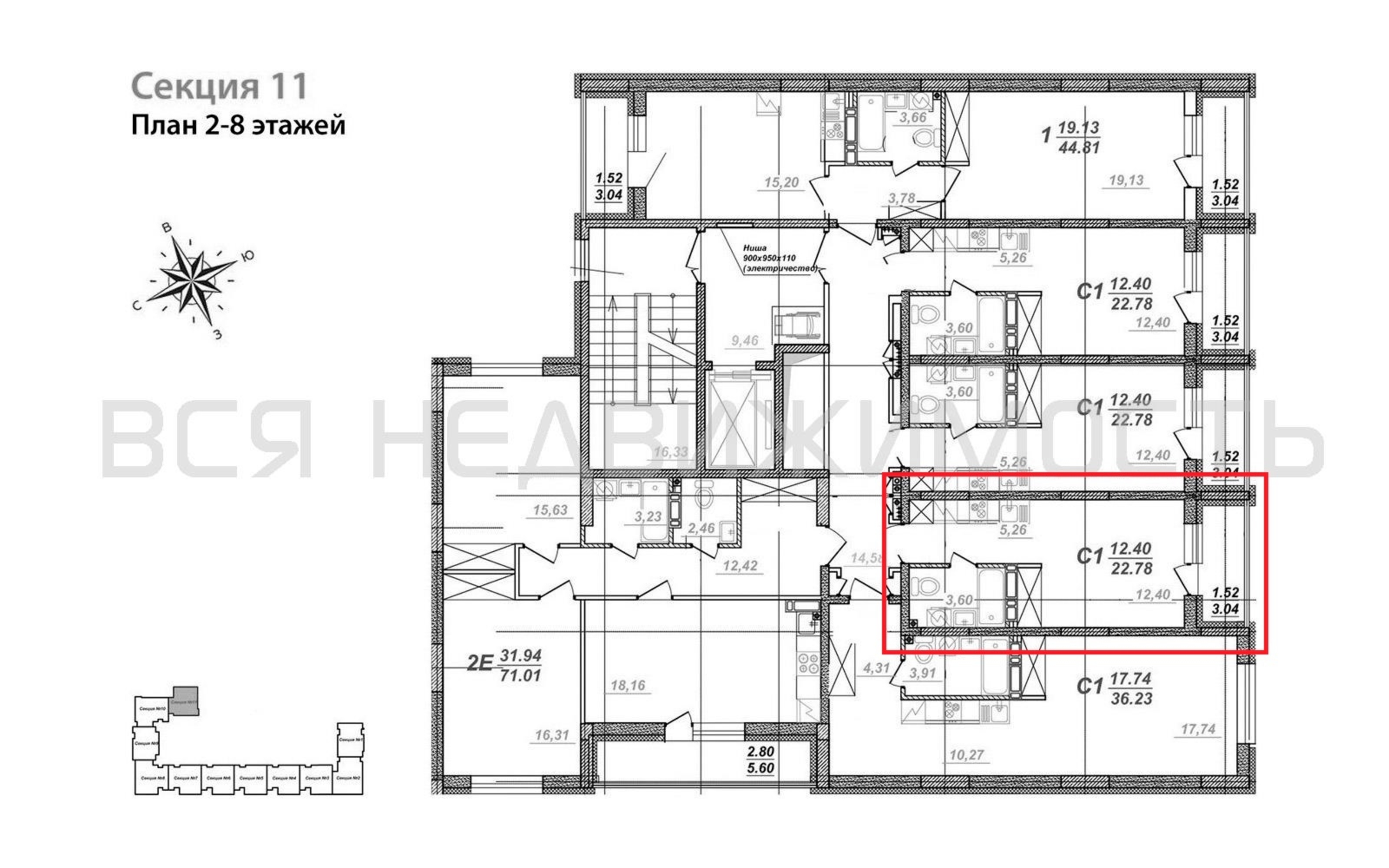 Квартиры-студии, 22.78 м² 6/8 этаж ID объекта 100107746