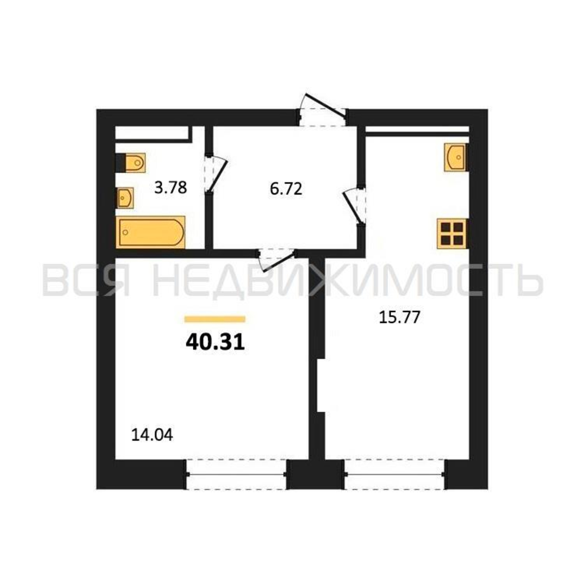 1-комнатная квартира, 40.31 м² 2/28 этаж ID объекта 100108316