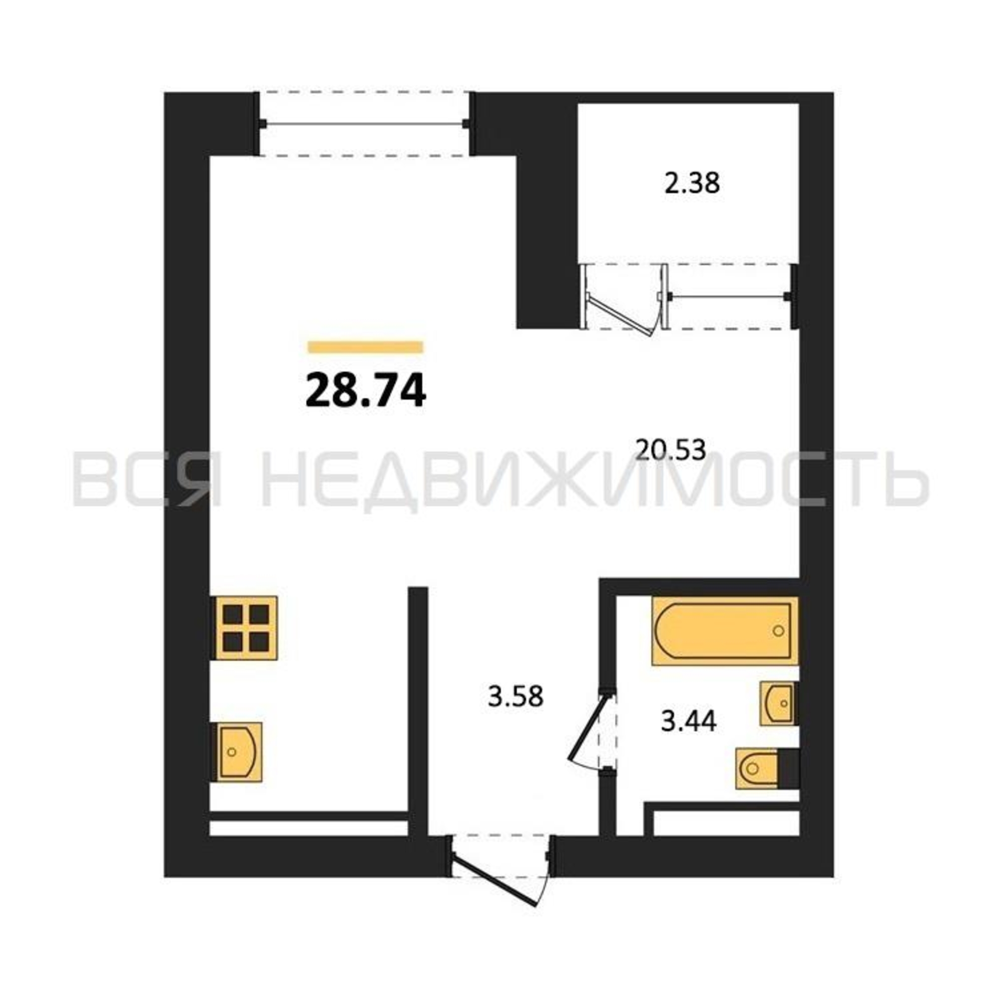Квартиры-студии, 28.74 м² 8/28 этаж ID объекта 100108359